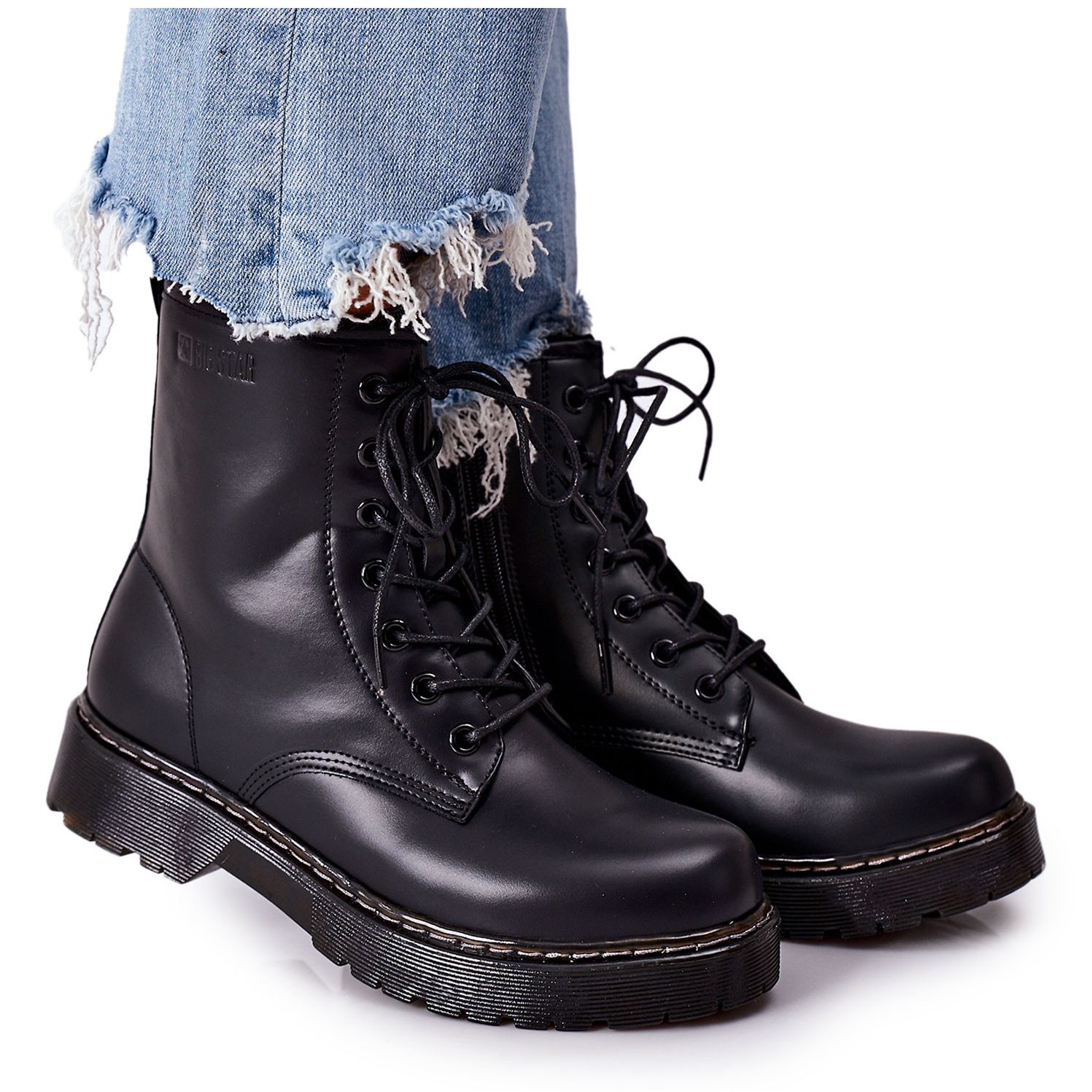 Boty mají výšku 15 cm a plochý podpatek 3,5 cm, díky čemuž jsou extrémně pohodlné i při dlouhodobém nošení. Zip a šněrovací detaily dodávají charakter a přizpůsobí se každé noze.