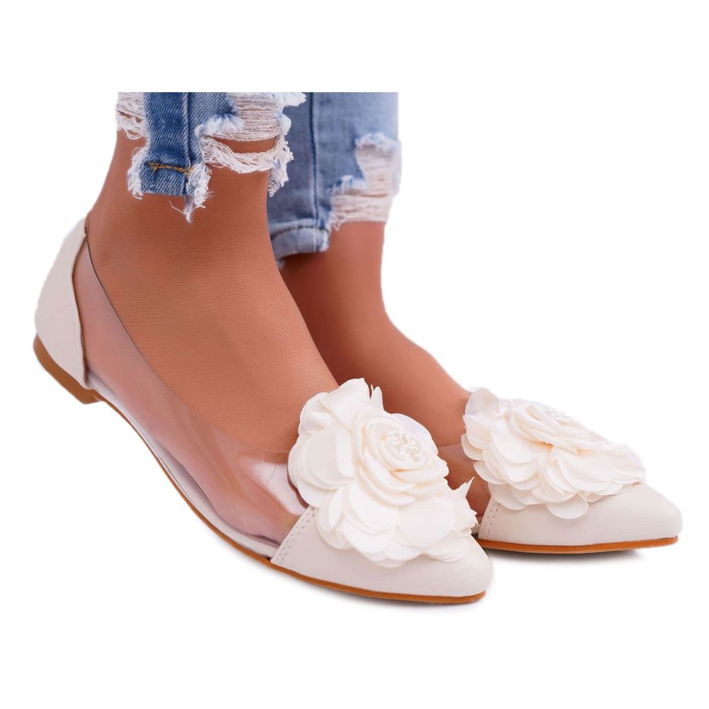 LU BOO Dámské balerínky Lu Boo béžové s průhledným květem Dairin béžový