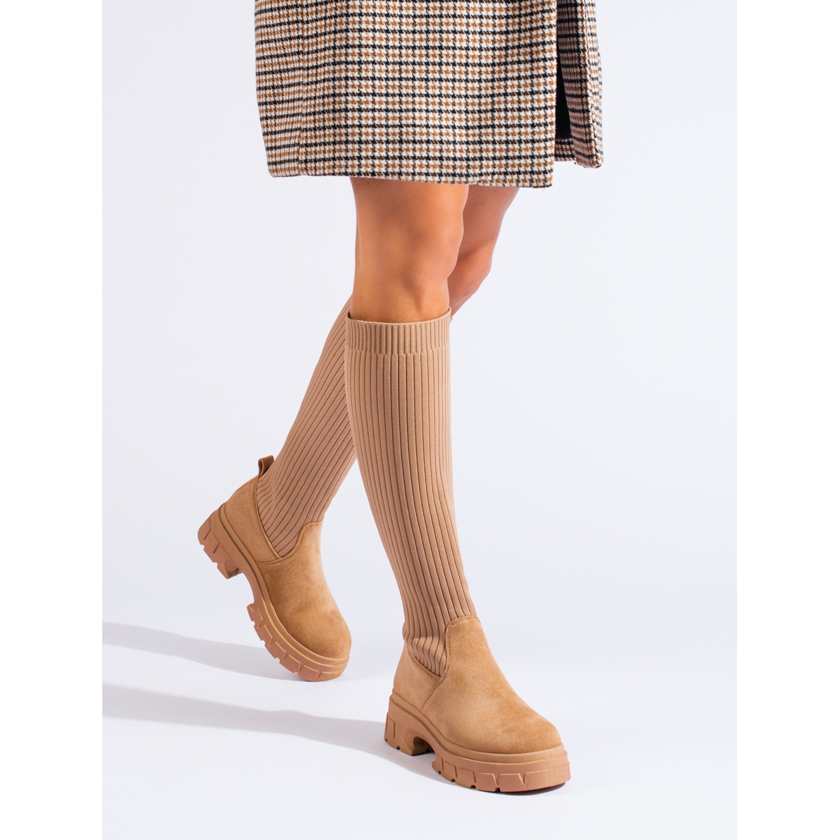 Inna marka Dámské béžové kozačky s pružným svrškem béžový