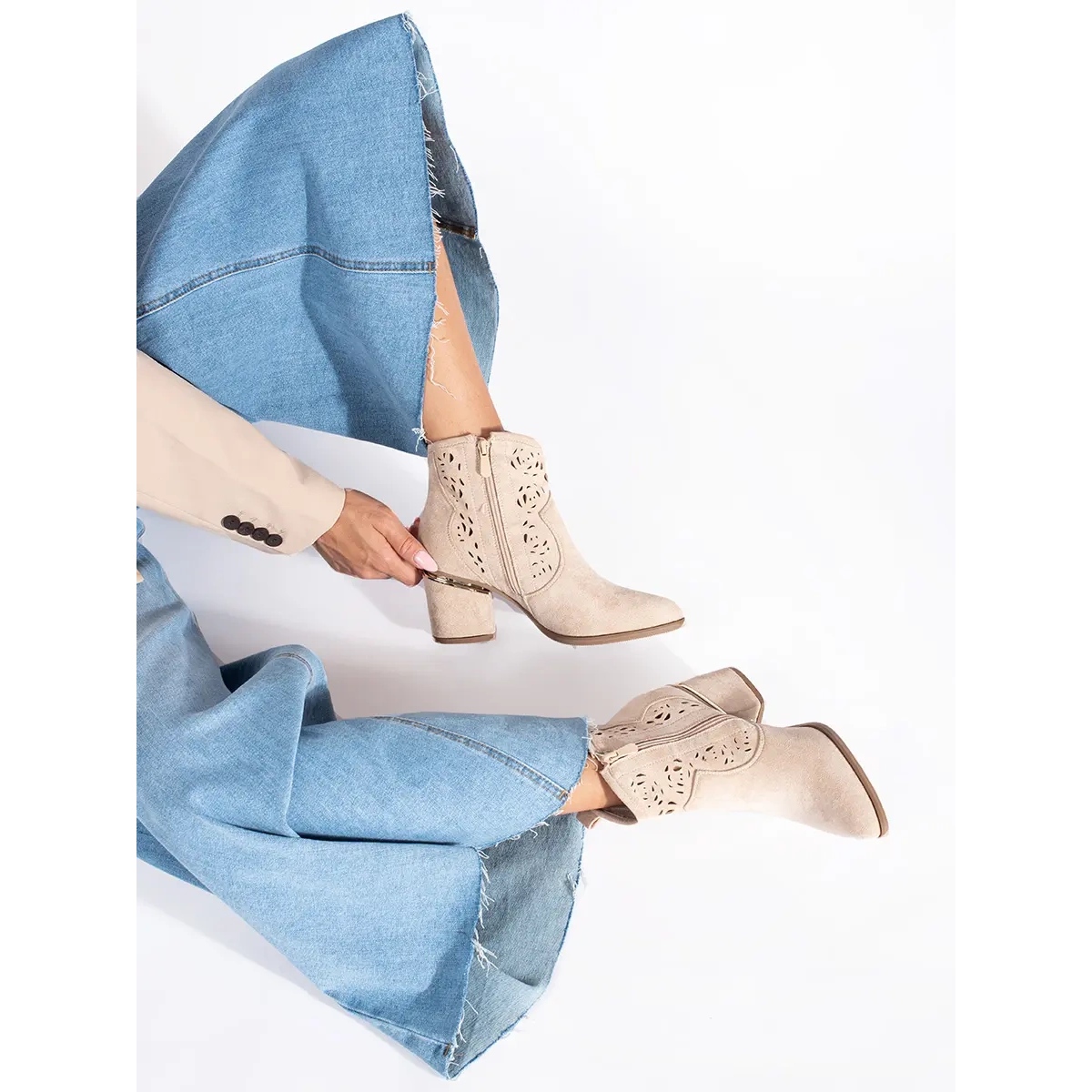 - Modelka: Dámské béžové prolamované kovbojské boty