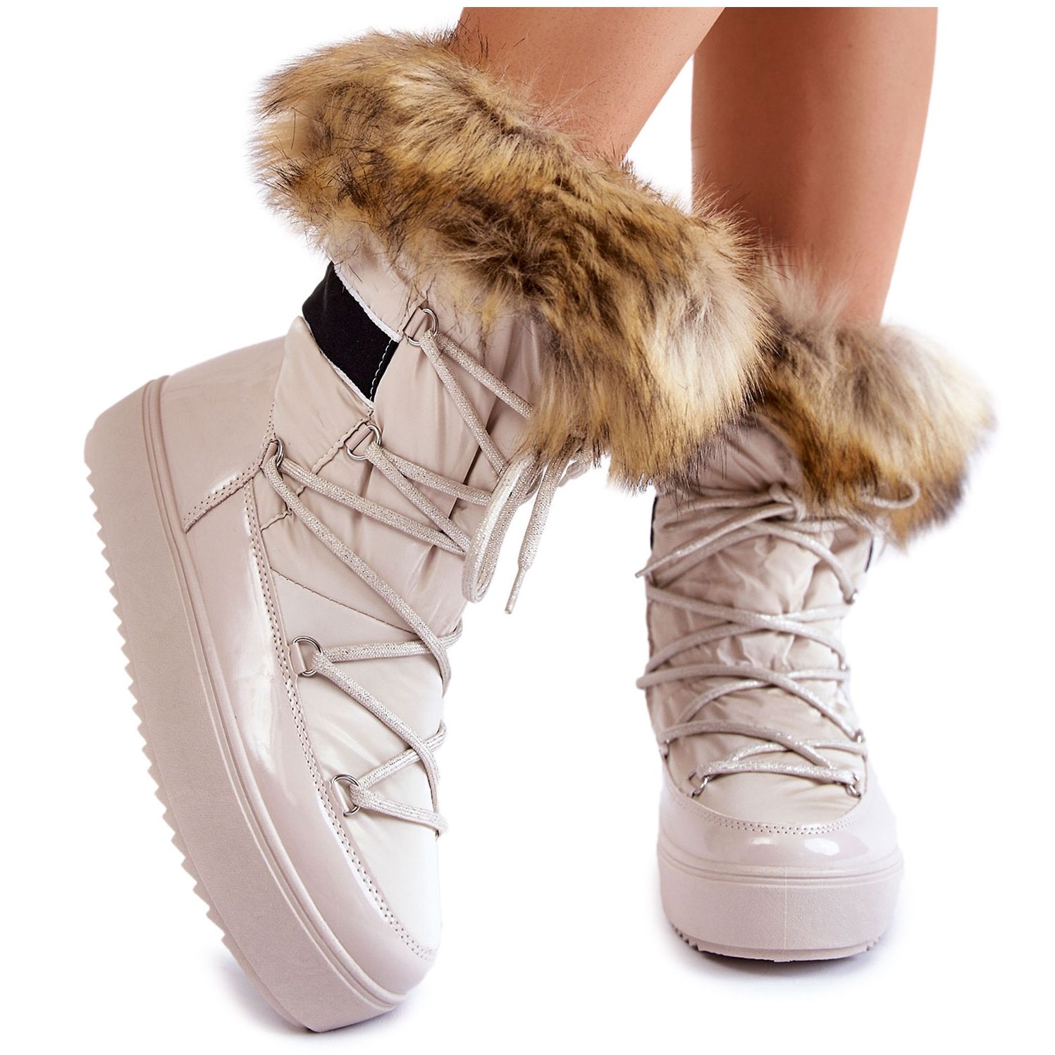 Inna marka Dámské béžové Shannon šněrovací boty do sněhu s kožíškem béžový