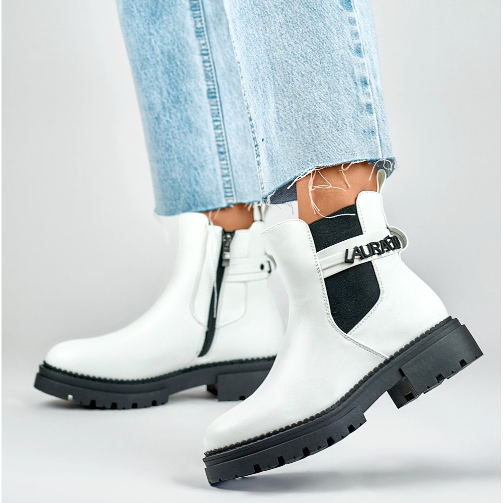 Skvělé pro džíny a tlustý svetr každý den, ale také pro šaty a kabát, když chcete přidat postavu do vzhledu - bílá barva a dekorativní nápis způsobí, že boty se stanou módním přízvukem jakékoli stylizace.