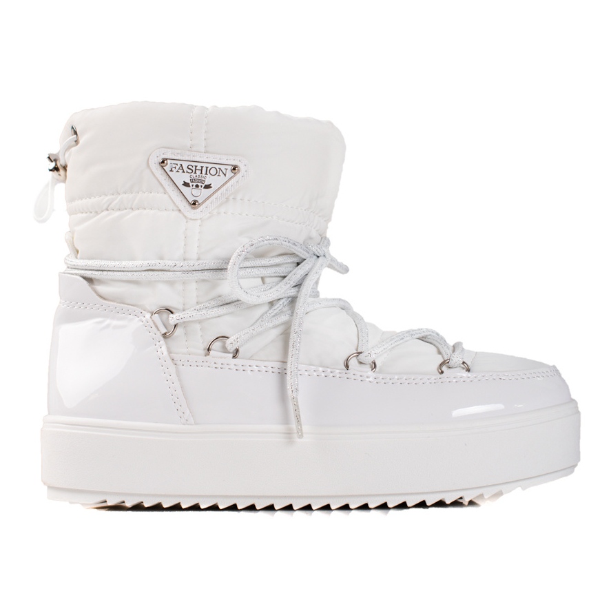 Bílé sněhule SHELOVET jsou vybaveny syntetickou podrážkou s nášlapem, která zajišťuje vynikající přilnavost a stabilitu na kluzkém povrchu. Zateplený vnitřek s textilní kožešinovou vložkou udrží vaše nohy v teple i v těch nejchladnějších dnech.