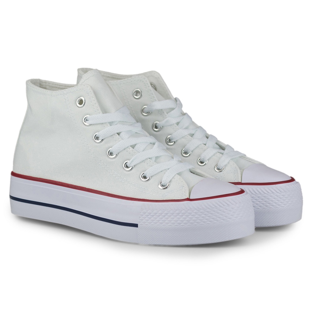 Moderní, nadčasové ženské tenisky ze sbírky Keeshoes, určené pro pohodlí a univerzální styl. Vyrobeno z vysoce kvalitního textilního materiálu v čistě bílé, ideální pro jarní/letní sezónu. Model na vysoké horní (9 cm) s dekorativní stabilní platformou s výškou 4 cm zdůrazňuje postavu a zároveň zajišťuje pohodlí nošení po celý den.