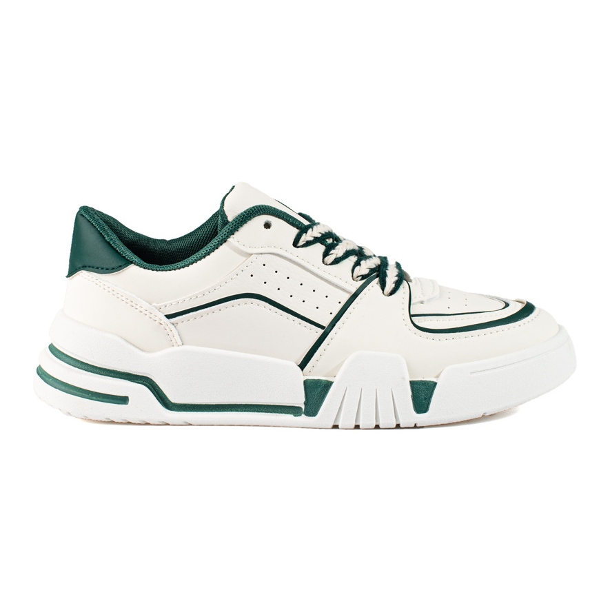 Tenisky jsou vyrobeny z vysoce kvalitní ekologické kůže, díky čemuž jsou šetrné k životnímu prostředí a zároveň jsou maximálně stylové. Jejich klasická bílá barva s módními zelenými akcenty dokonale zapadá do současných trendů a umožňuje snadné sladění s různými styly – od ležérních až po elegantnější.