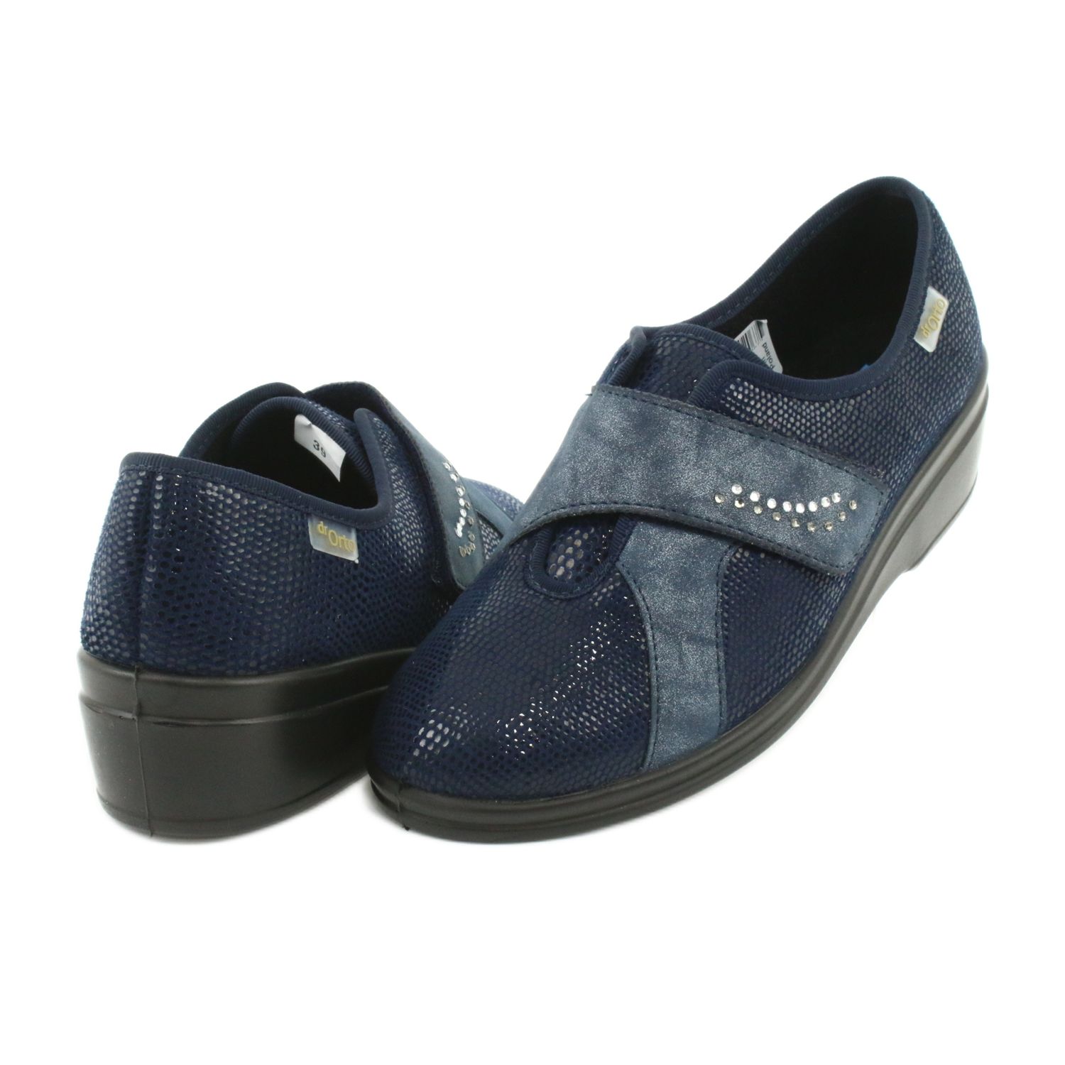 Další výhodou modelu 032D001 jsou zirkony, které mu dodávají jedinečný charakter. Námořnická modrá barva se perfektně hodí k různým stylům a černá podrážka dodává elegantní vzhled. S kulatou špičkou a zapínáním na suchý zip jsou tyto nízké boty nejen pohodlné, ale také se snadno pořídí a perfektně padnou.