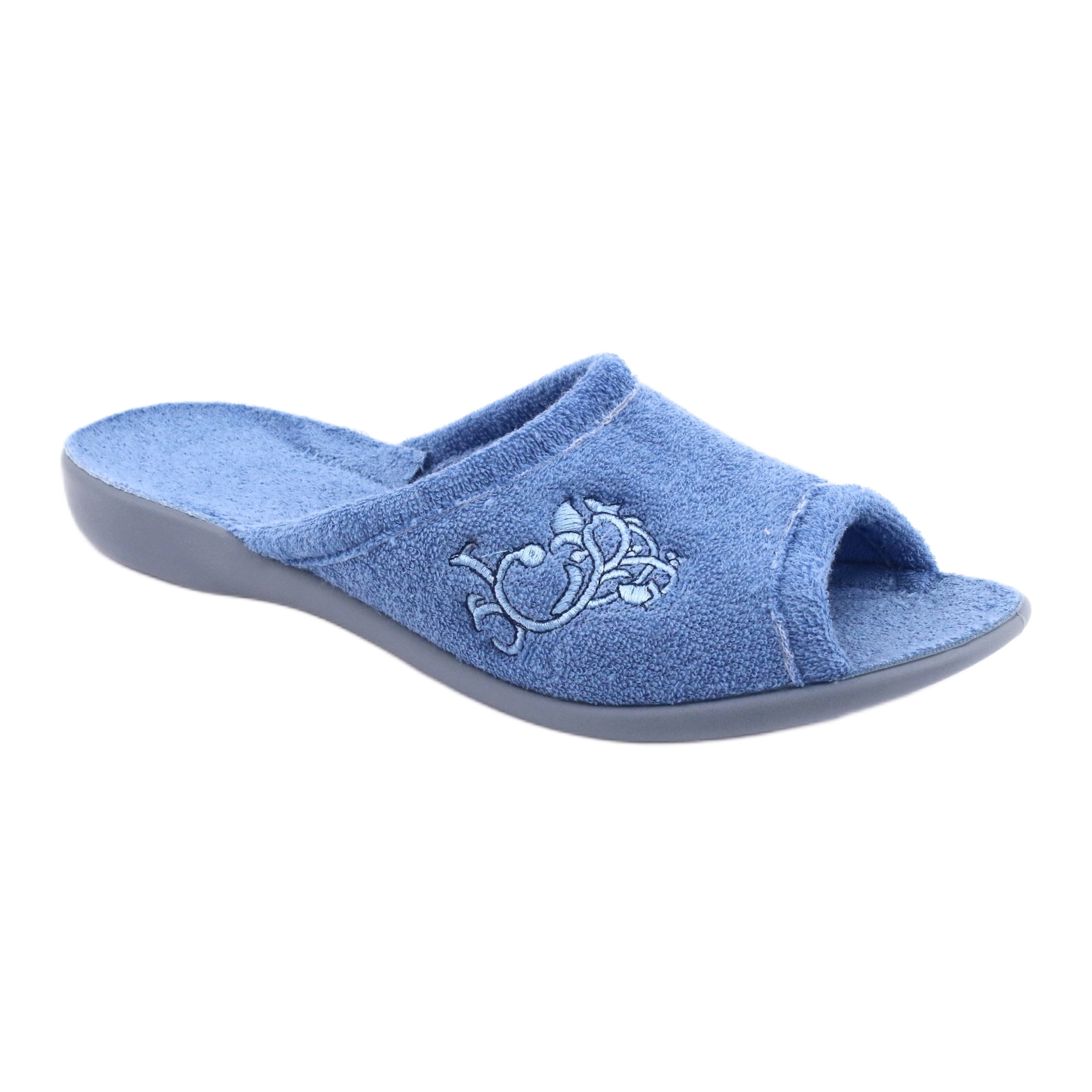 Objevte pohodlí a eleganci při každodenním používání s pantoflemi Viki od Befado. Modrý model PU 256D003 je perfektní volbou pro každou ženu, která chce doma pohodlí, zejména v chladnějších podzimních dnech.