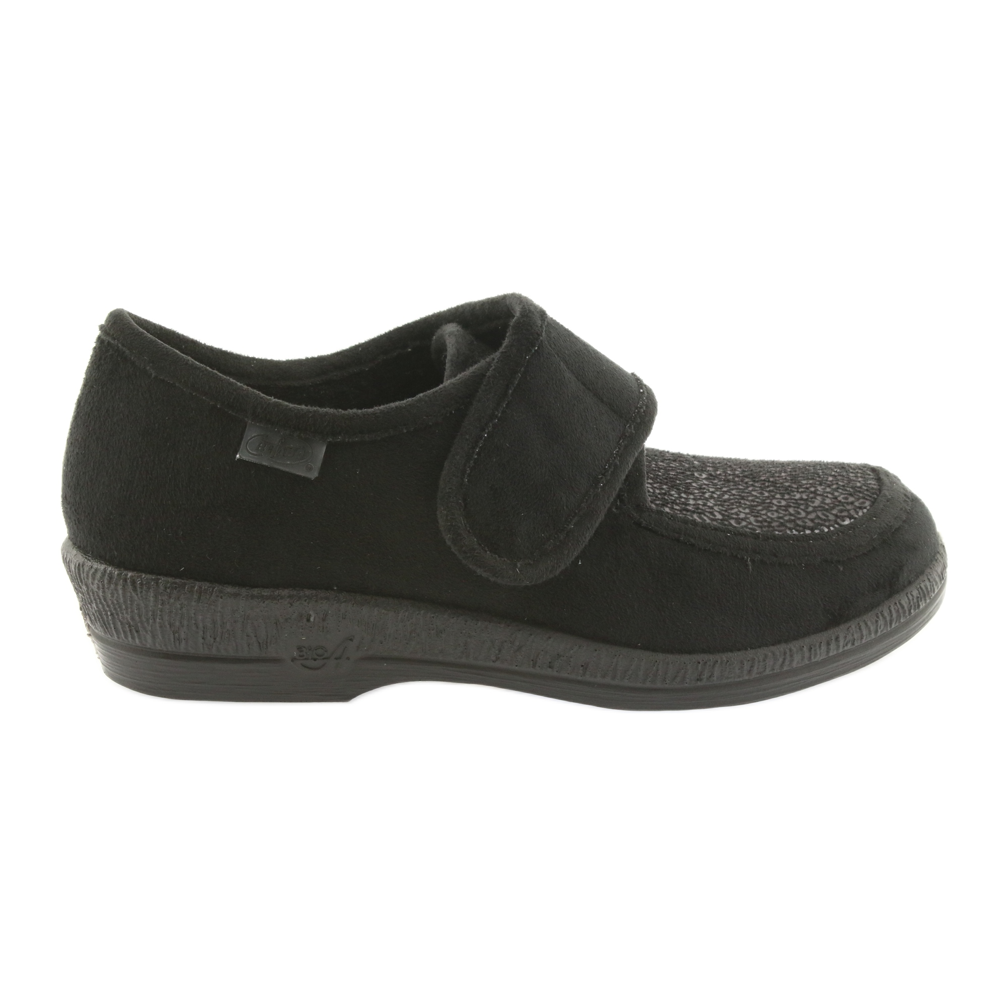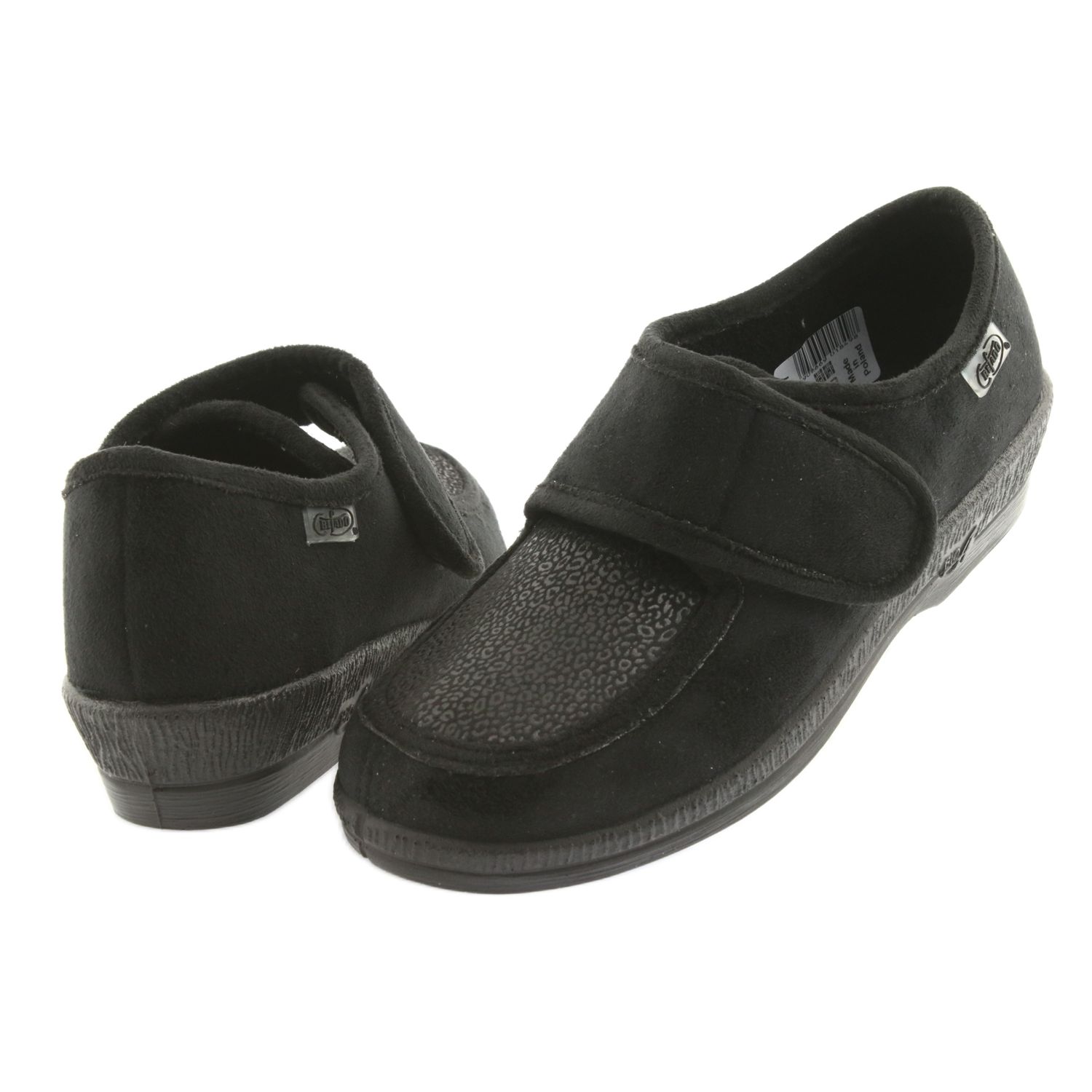 Představujeme pohodlné a pohodlné dámské boty Befado 984D017 v elegantní černé barvě. Tyto pantofle byly pečlivě navrženy pro každodenní použití uvnitř i venku. Svršek z pružného a strečového materiálu se dokonale přizpůsobí tvaru nohy, což ocení zejména lidé s deformacemi nebo zdravotními problémy.