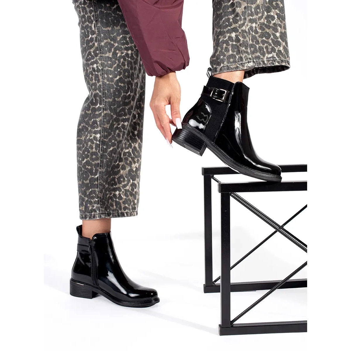 Dámské boty Chelsea s černým patentem