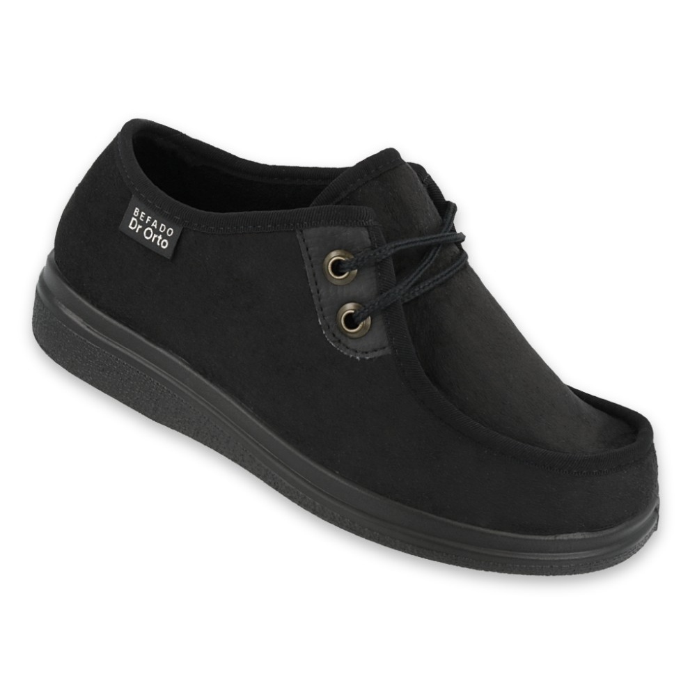 Model DR.ORTO Befado 871D004 je dámská obuv určená pro osoby s citlivými chodidly a syndromem diabetické nohy. Jemná, pěnová vnitřní struktura a snížený počet švů a spojů minimalizují riziko podráždění a zároveň poskytují měkkou a stabilní podporu při každodenním používání. Univerzální černá barva a klasická kulatá špička dělají boty perfektní jak na doma, tak na krátké výlety venku.