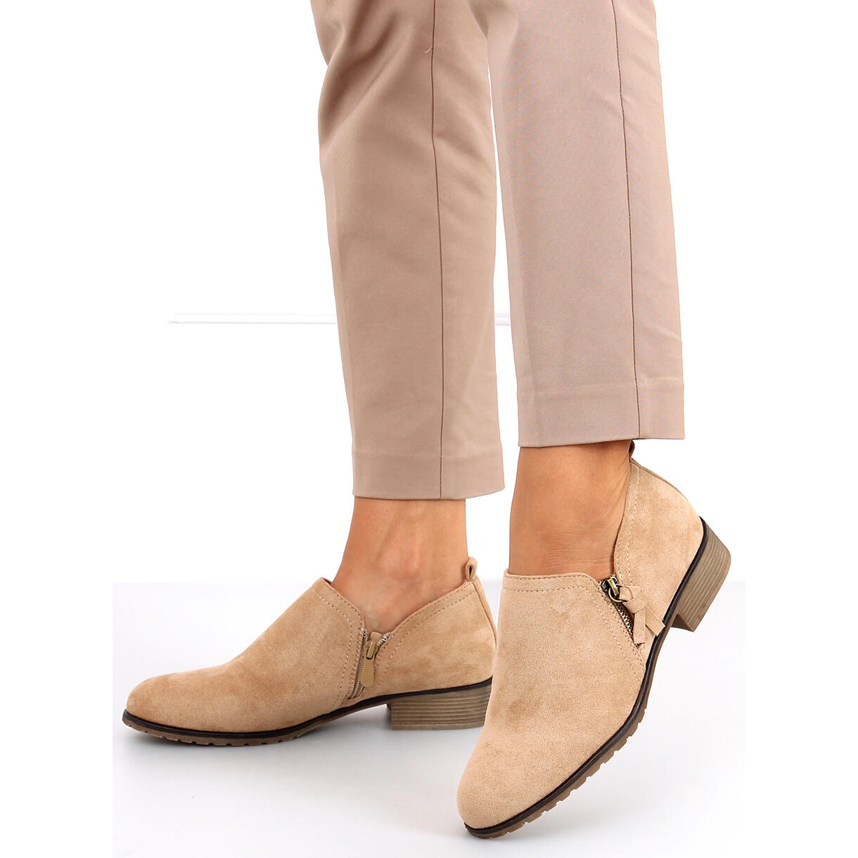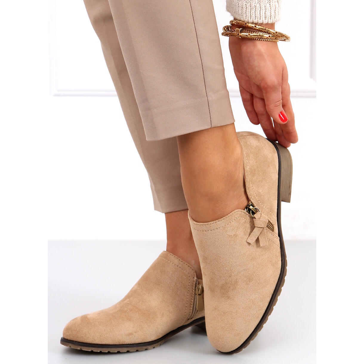 Dámské boty Erna v odstínech khaki a béžové jsou perfektní volbou pro ženy, které si cení pohodlí a stylu. Jsou vyrobeny z ekologického semiše, vypadají mimořádně elegantně a jejich urostlý tvar dokonale podtrhne jakýkoli vzhled. Tento model se vyznačuje praktickým zipem na boku, který výrazně usnadňuje obouvání a vyzouvání.