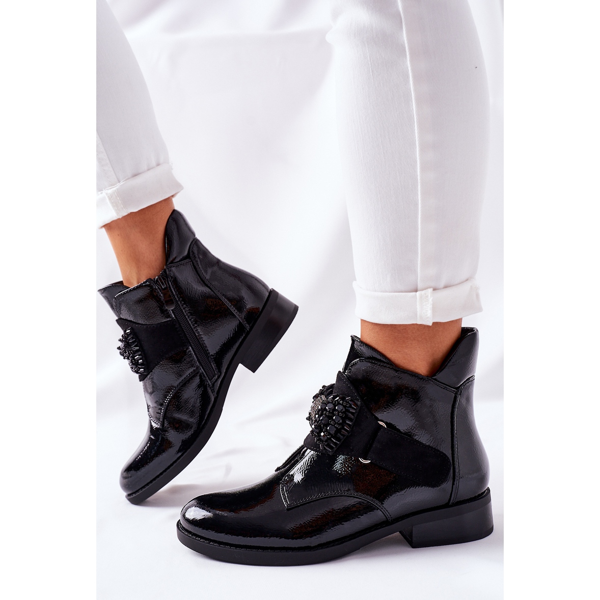 Objevte eleganci a pohodlí v jednom z nejnovějších modelů kozaček značky S.Barski! Model černých lakovaných dámských kotníkových bot zdobených krystaly Schuler je perfektní volbou pro sezónu podzim/zima.