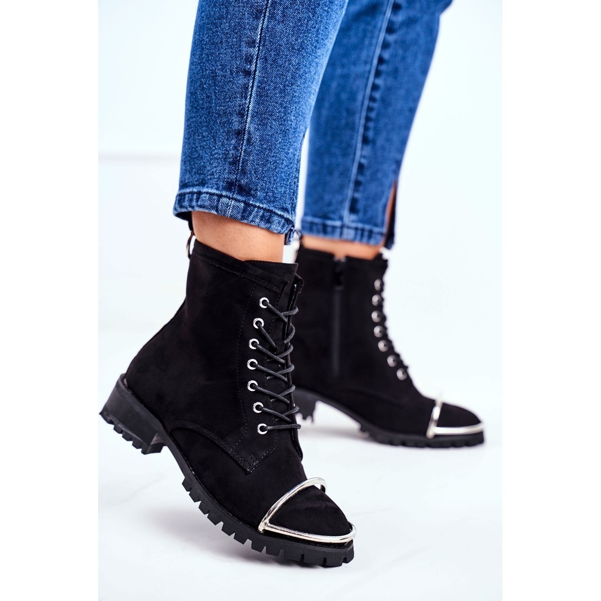 Objevte skalní hranu v každodenních stylizacích. Černý, semišový vzhled je zde kombinován s expresivním kovovým nastavením nahoře, díky kterému boty přitahují vzhled a přidávají charakter. Loed, navíc připevněný zipem - snadno se nasadí. Silná podrážka traktoru a stabilní, nízká pata (3,5 cm) zajišťují pohodlí a trvanlivost.