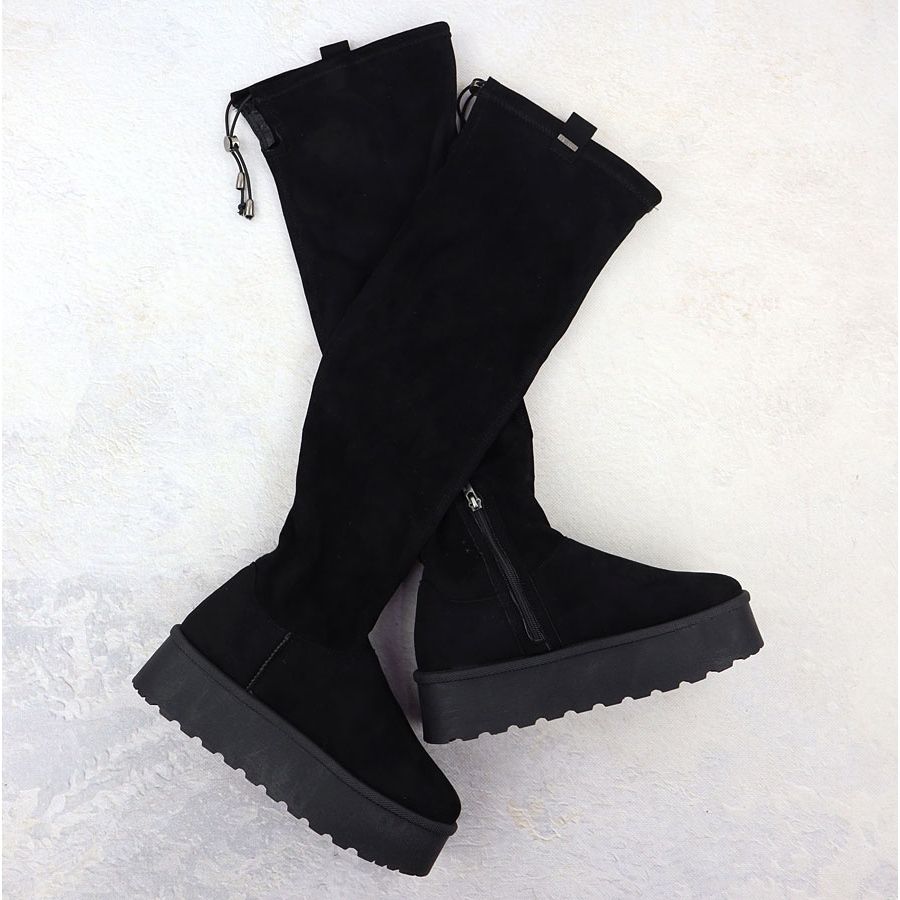 Dámské boty na platformě Black Big Star SS274264 je skvělou volbou pro každou ženu, která chce kombinovat pohodlí s nejnovějšími módními trendy. Vyrobeny z vysoce kvalitní semišové ekologické kůže jsou charakterizovány elegantní černou barvou, ideální pro jakýkoli styl.