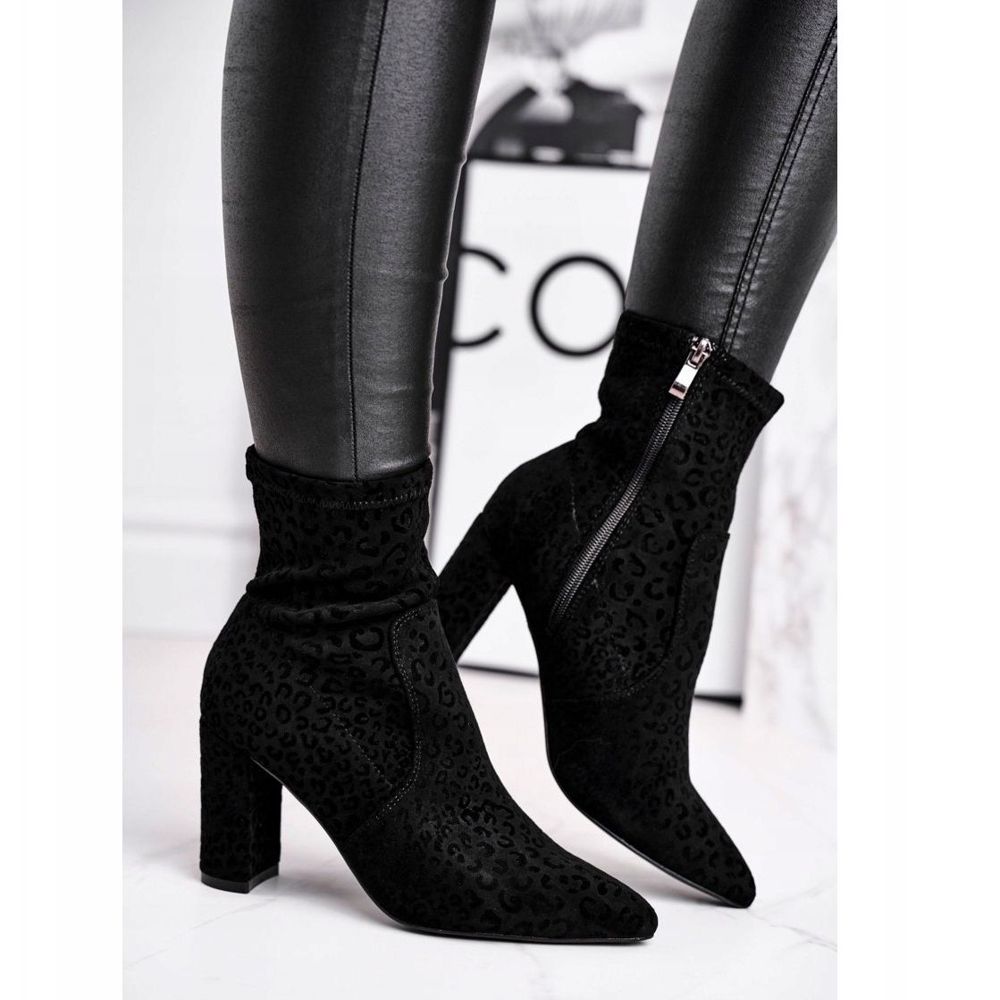S.Barski Dámské boty na podpatku Centki Black Panther černý