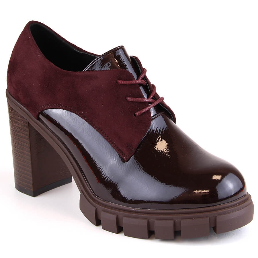 M. DASZYŃSKI M. DASZYŃSKI Dámské boty na sloupku a platformě, kaštanové M.Daszyński SA218-2 červené