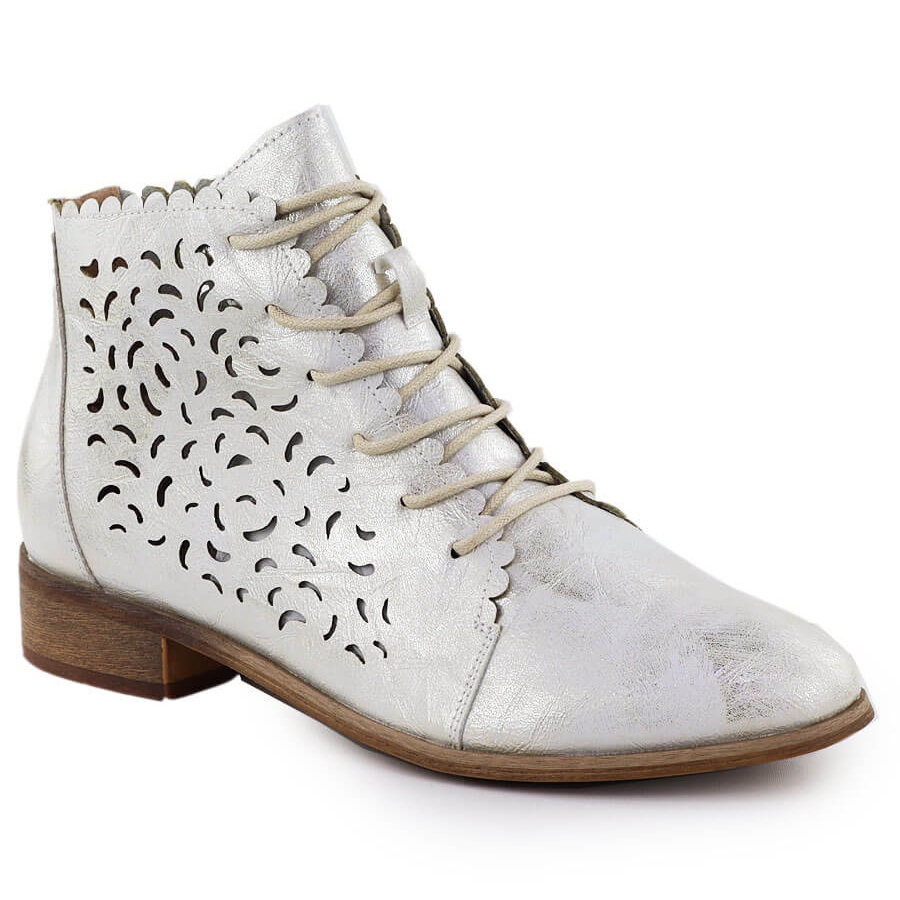 Tyto boty, vyrobené z vysoce kvalitní ekologické kůže, poskytují odolnost a estetický vzhled a dekorace s otevřeným dílem přidávají ke jakékoli stylizaci nádheru. Interiér bot je zakončen přírodní kůží, která zaručuje pohodlí a správný vzduch. Kulatý prst a výška horního svršku asi 10,5 cm způsobují, že boty elegantně zdůrazňují nohy a jsou ideální pro jarní dny.