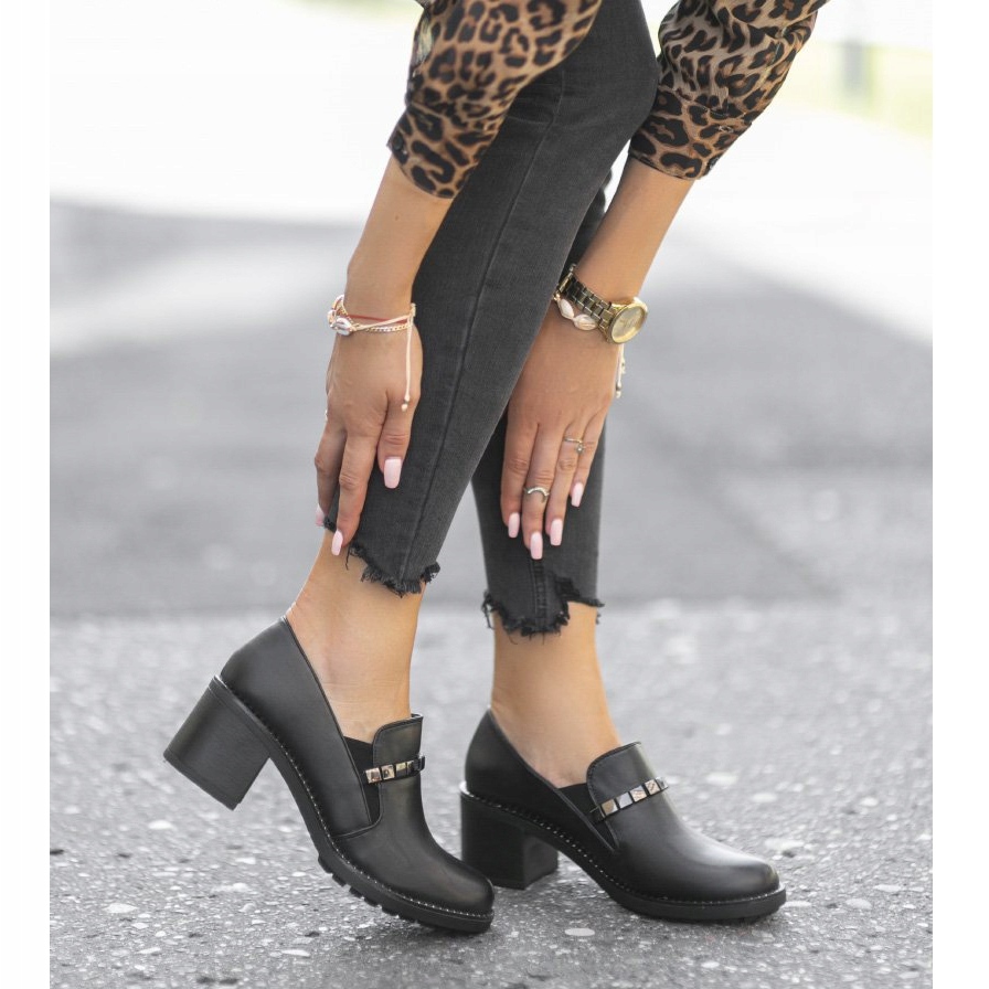 Černé boty na podpatku C17-6113 jsou nazouvací, což usnadňuje obouvání a zouvání. Jejich syntetická podrážka zajišťuje odolnost a dobrou přilnavost a ekologická stélka zajišťuje, že se chodidlo cítí pohodlně po celý den.