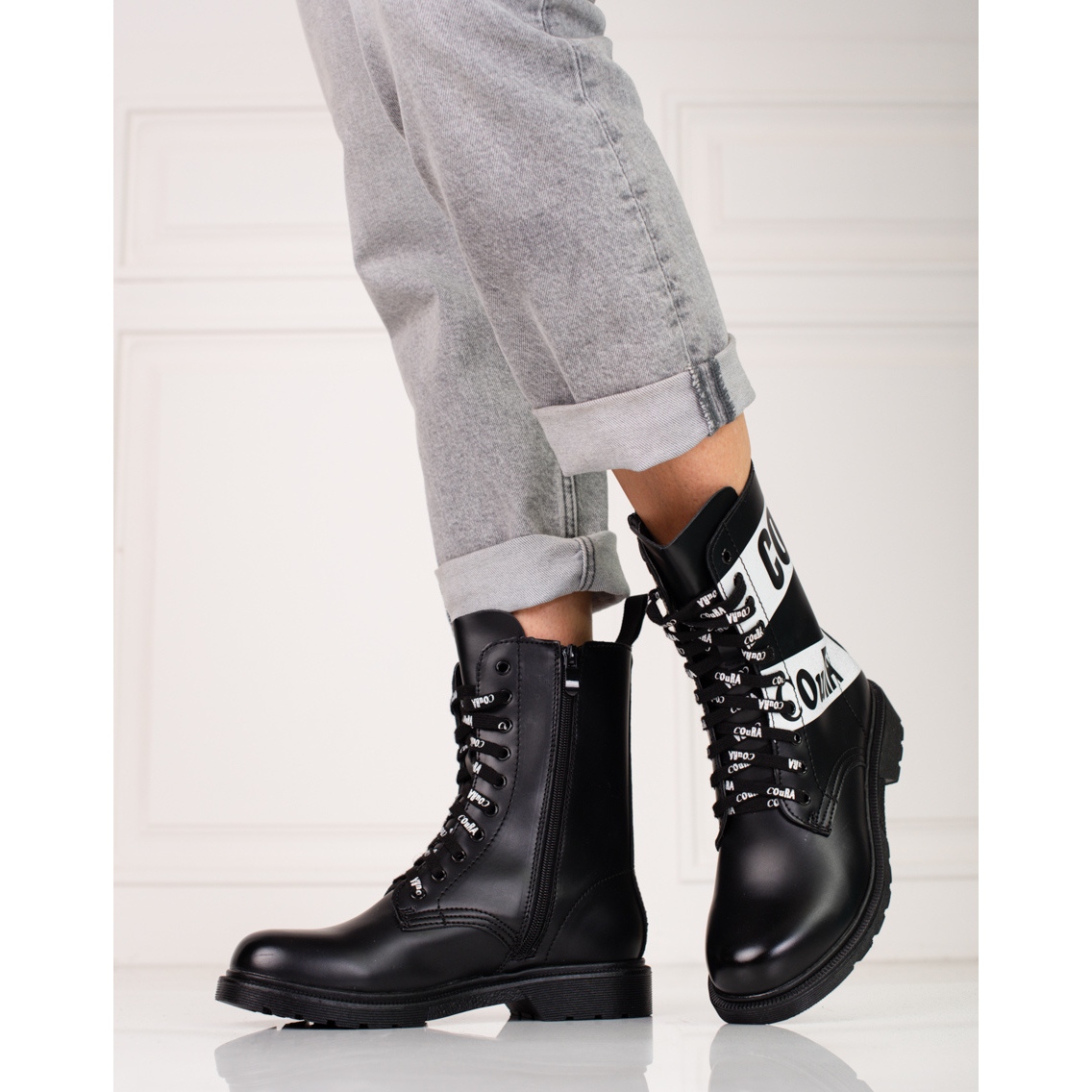Klasické, černé ženské pracovníky jsou návrhem kombinujícím příležitostnou a rockovou postavu s pohodlím potřebným každý den. Vyrobeno z ekologické kůže, s textilní vložkou, budou pracovat na podzim-zima, zejména pokud hledáte „kotník“ s výrazným designem.