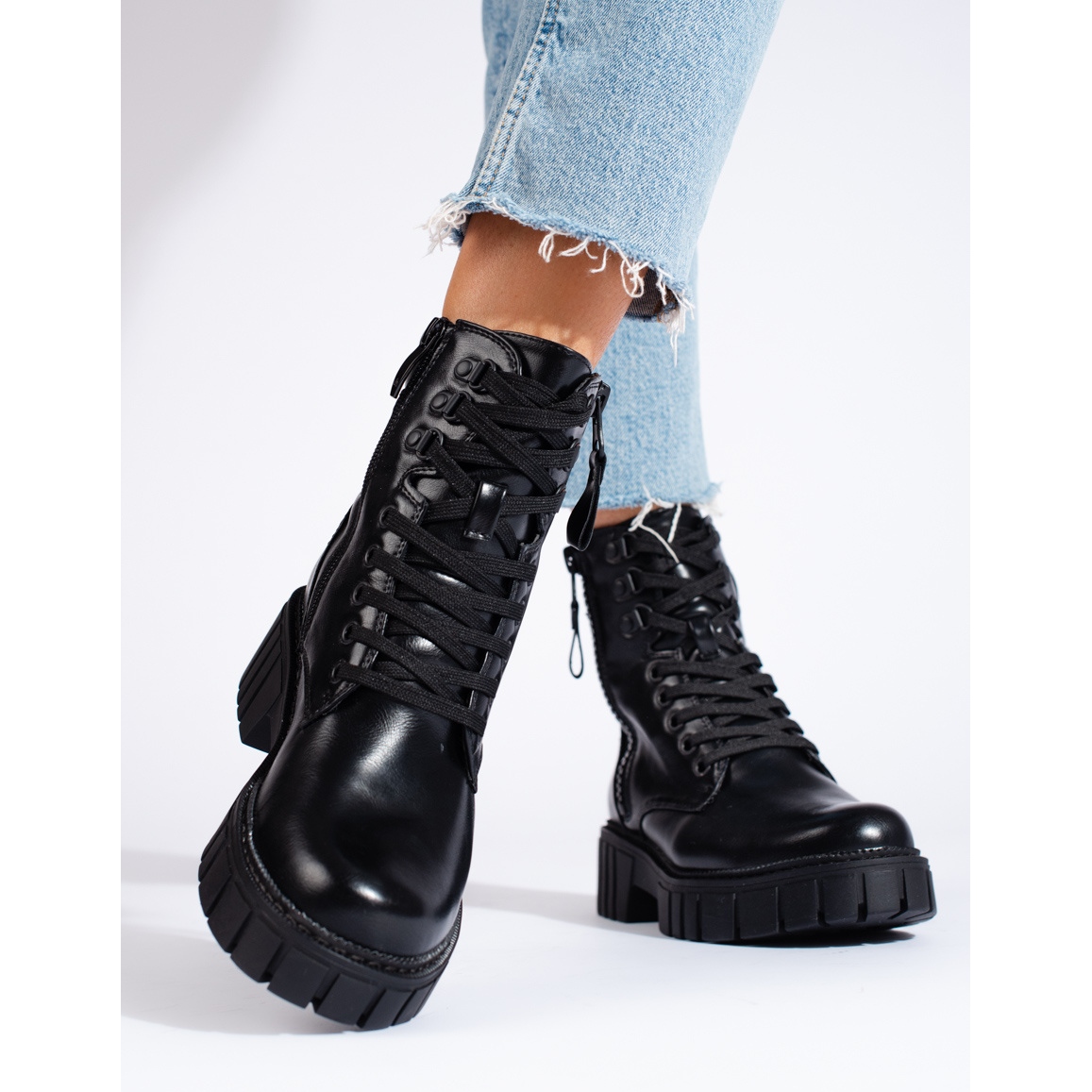 Elegantní a odolné černé pracovníci - perfektní kombinace neformálního a skalního stylu. Vyrobeno z organické kůže, s oteplováním a stabilní podrážkou se běhounem, budou pracovat na chladnějších dnech a přidávají postavu každodenním a expresivnějším stylizacím.