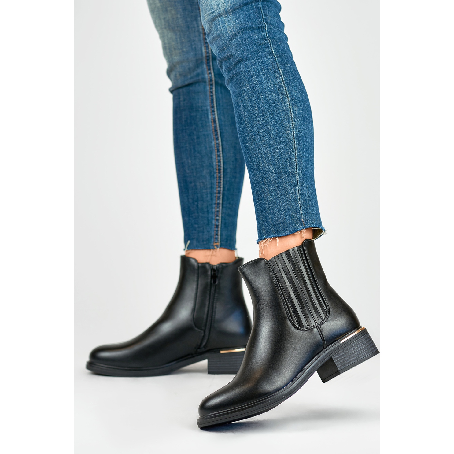 Klasické, černé boty vyrobené z vysoce kvalitní ekologické kůže kombinují eleganci a každodenní pohodlí. Zaoblený nos a nízká, stabilní pata s výškou 4 cm způsobují, že model vhodný pro práci i pro procházky nebo setkání s přáteli. Horní sázka po kotníku (asi 13 cm) a praktický zip na boku usnadňuje rychlé vložení a vzletu.