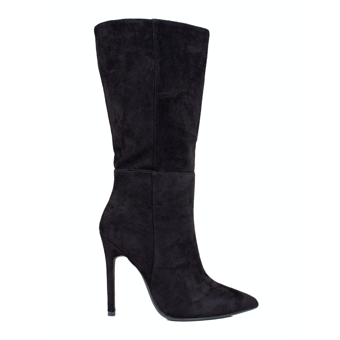 Elegantní, nadčasové boty sahající na kolena, vyrobená z ekologického semiše v klasické černé barvě. Ideální pro chladnější dny podzimní/zimní sezóny - kombinují ženský střih na špendlíku s praktickým oteplováním, díky kterému budou pracovat každý den i během večerních výletů nebo oslav.
