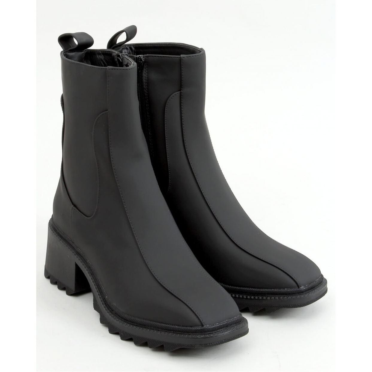 Upevňování zipu umístěného na boku horní části zajišťuje snadnost nasazení a sundávání obuvi a interiér lemovaný jemnou kožešinou zaručuje pohodlí a teplo, zejména v chladnějších dnech. Externí materiál, matná ekologická kůže, nejenže vypadá stylově, ale je také šetrná k životnímu prostředí.