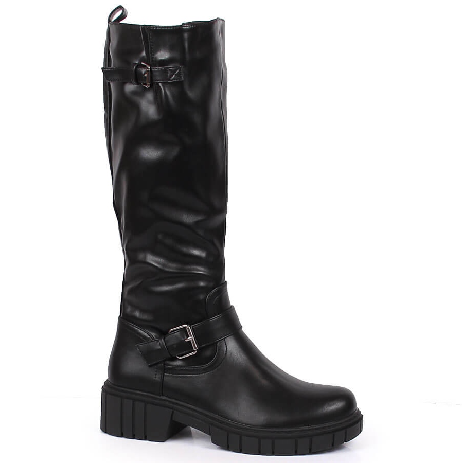 Jezzi Jezzi Dámské černé kozačky s nastavitelnou přezkou Vinceza černá