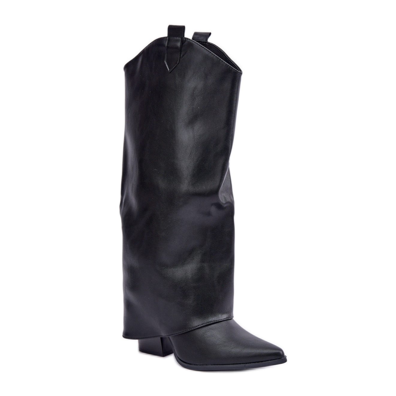 Inna marka Dámské černé kozačky s ohrnutým svrškem černá