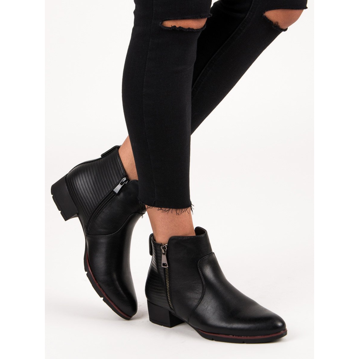 Tyto kotníkové boty vyrobené z vysoce kvalitní ekokůže vypadají nejen stylově, ale nabízejí také výjimečný komfort. Vybaveny pevnou podrážkou s nášlapem a měkkou stélkou poskytují komfort po celý den i při dlouhodobém nošení. Dodatečné zateplení z textilního materiálu z nich dělá ideální volbu pro chladnější dny podzimu a zimy.