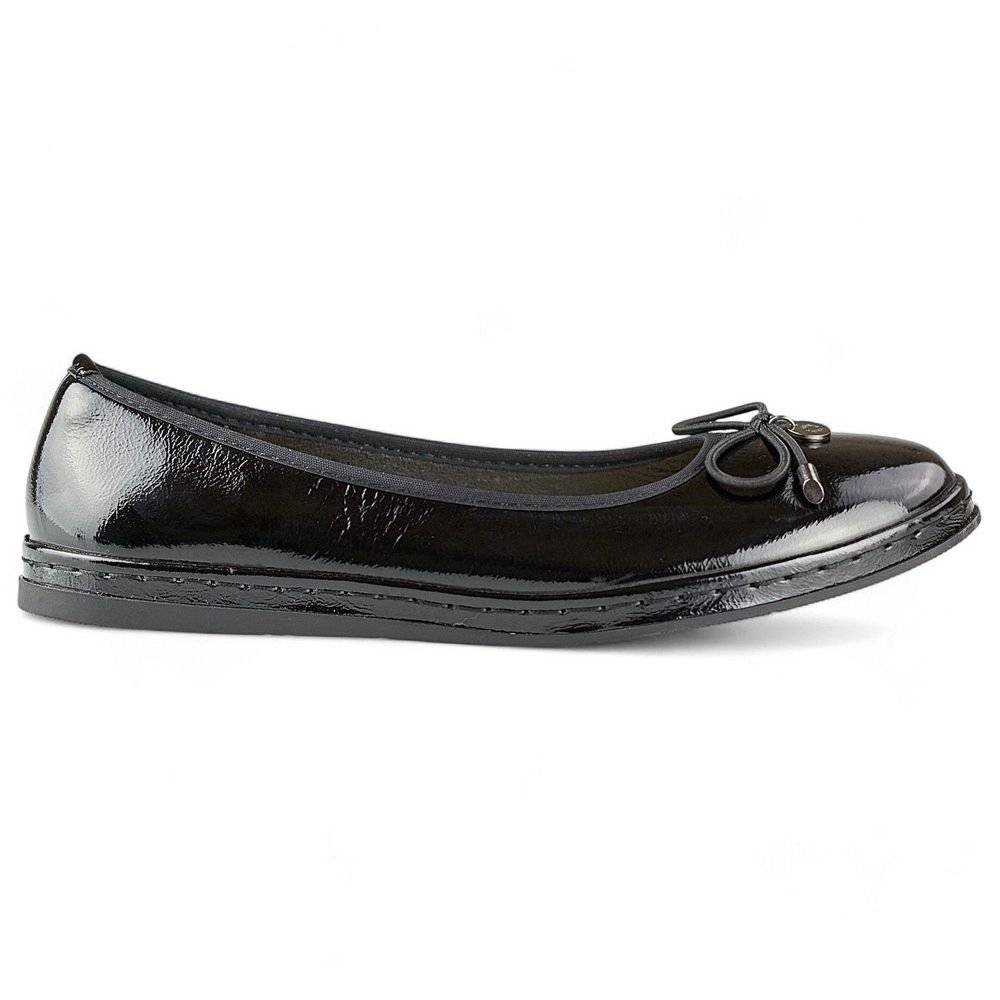 Horní vyrobená z vysoce kvalitní ekologické kůže v krásné, lesklé černé barvě jim dává jedinečný charakter. Kulatý nos a plochý paty dělají baleríny nejen elegantní, ale také velmi pohodlné, ideální každý den nosit. Kromě toho je jemný luk na přední straně boty okouzlujícím přízvukem, díky kterému jsou balerína vyniká z jiných modelů.