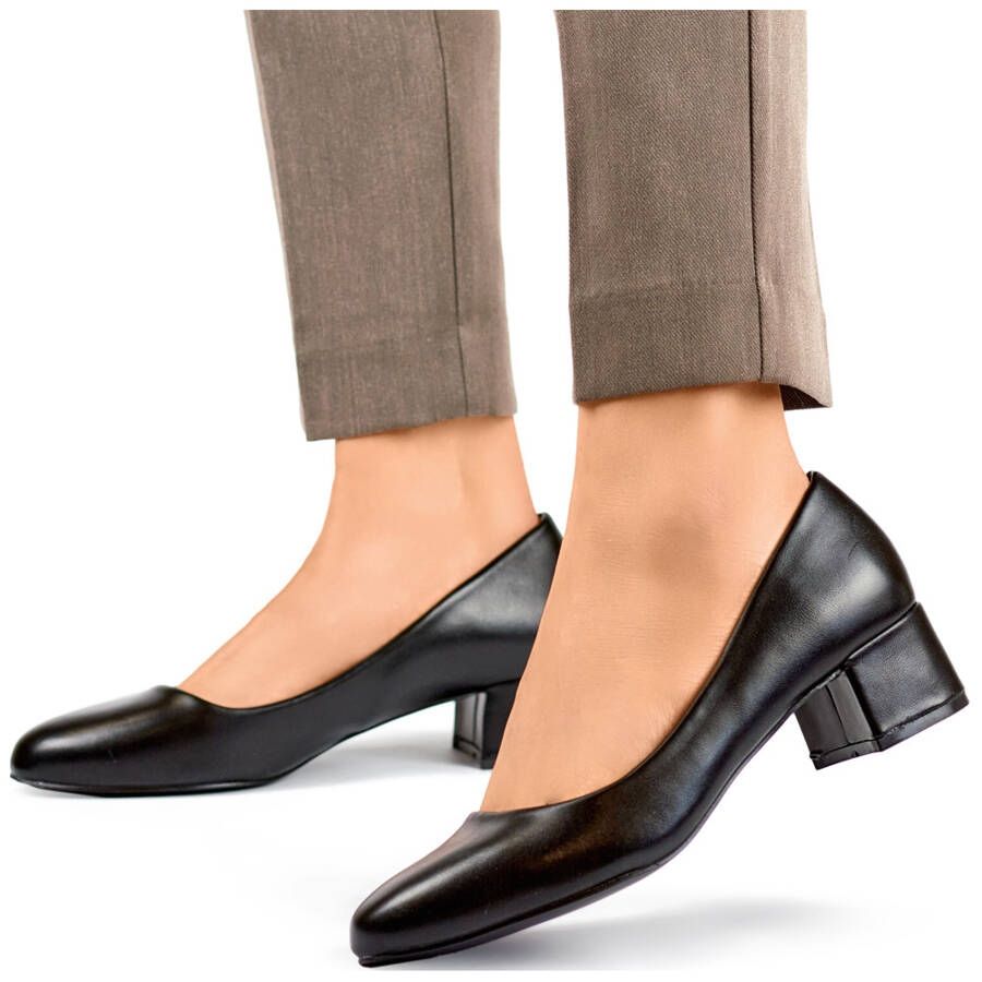 Tento model je charakterizován nízkou patou ve tvaru 4 cm vysokého bloku, což zajišťuje pohodlí nošení po celý den. Kulatý nos přidává jemnost a vložený střih umožňuje snadné nasazení a sundávání bot. Ekologická vnější kůže v nadčasové černé barvě způsobuje, že se tato čerpadla dokonale mísí s většinou stylů.