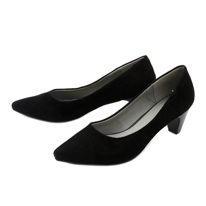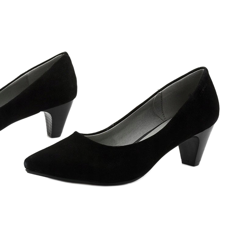 Černé dámské lodičky na vysokém podpatku Ynisola jsou dokonalou kombinací elegance a pohodlí, ideální pro mnoho stylů. Tyto klasické boty vyrobené z ekologické semišové kůže potěší jednoduchým minimalistickým designem bez zbytečných ozdob. Černý svršek a zakulacená mandlová špička dělají z těchto lodiček univerzální a snadno kombinovatelné k různým outfitům.