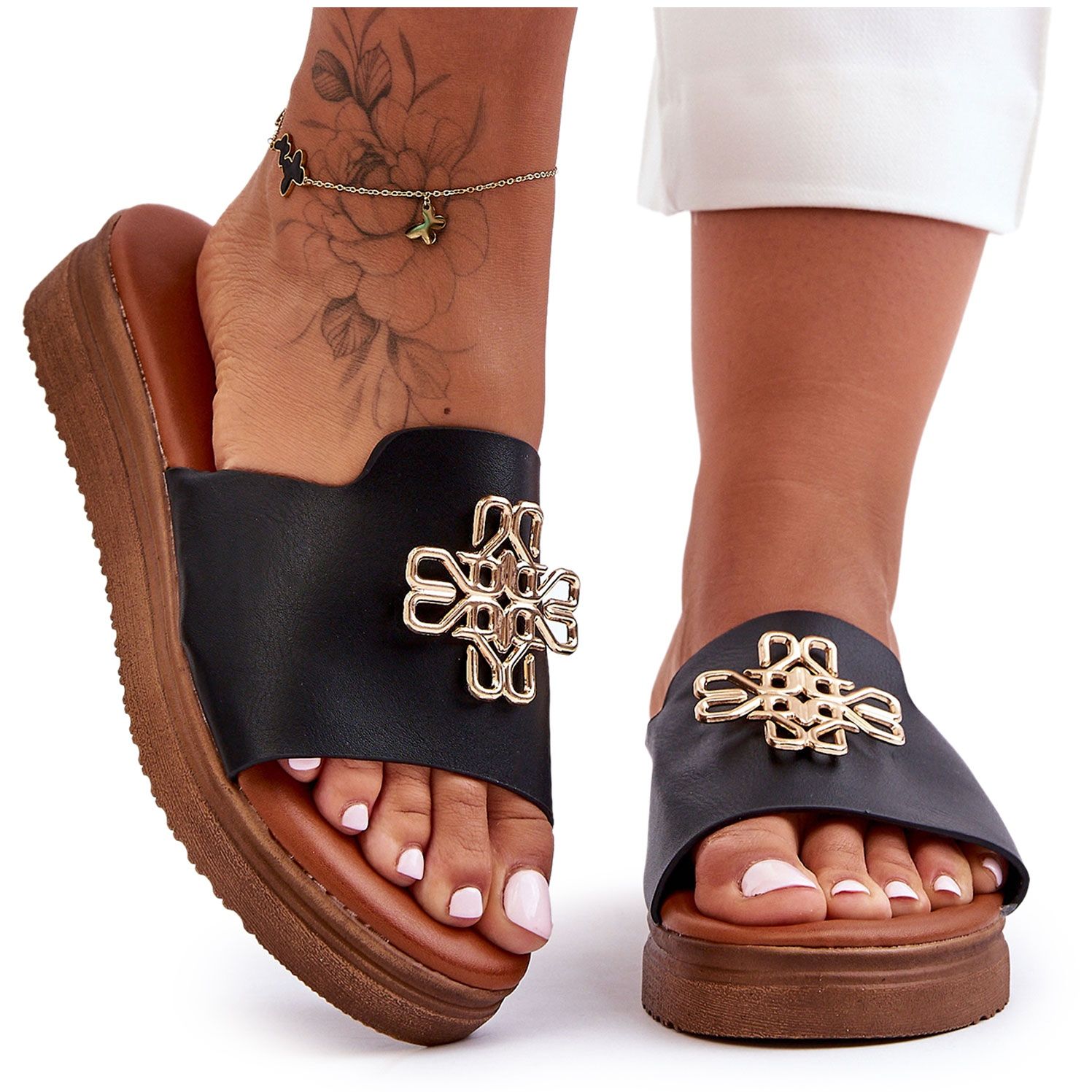 ** PG1 Dámské žabky na platformě s ozdobou Black Azera**