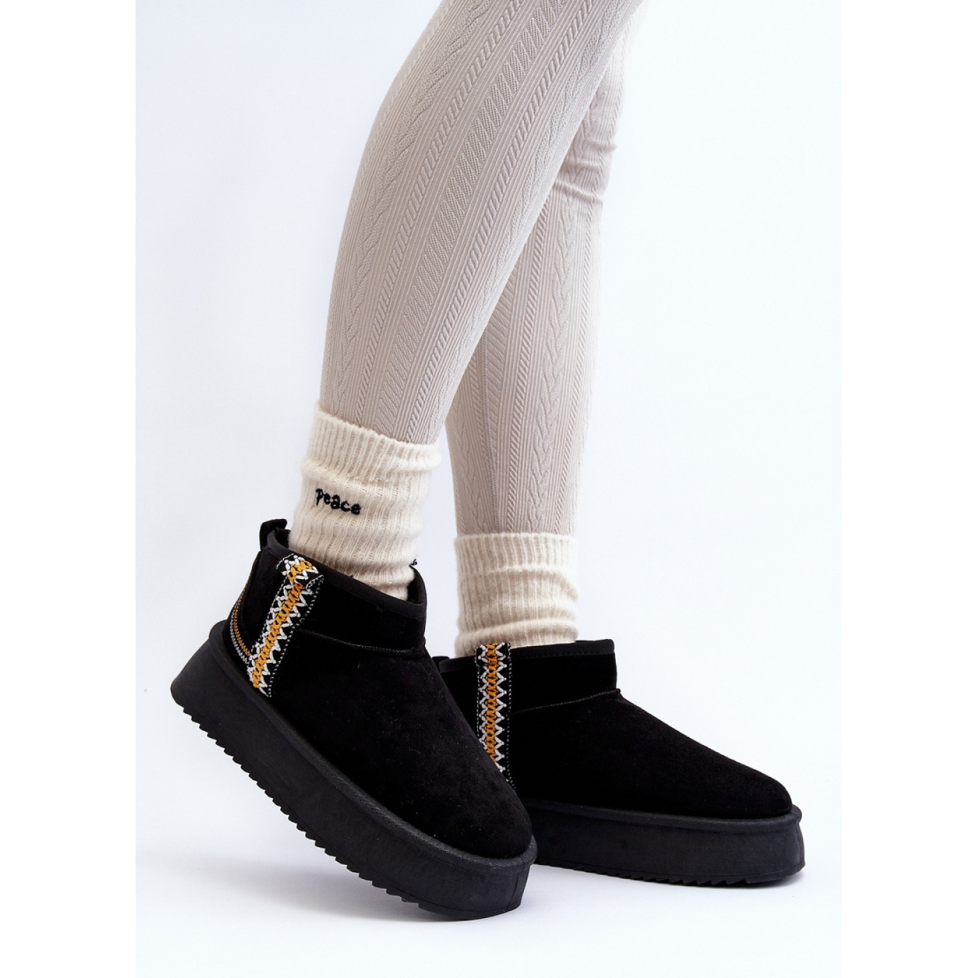 Objevte nejnovější zimní trend s našimi sněhovými botami Black Women na platformě! Tyto boty jsou vyrobeny z vysoce kvalitního ekologického semiše a jsou perfektní kombinací stylu a pohodlí. Silná gumová podešev poskytuje vynikající izolaci z chladné půdy, což z nich činí ideální volbu pro chladné dny.