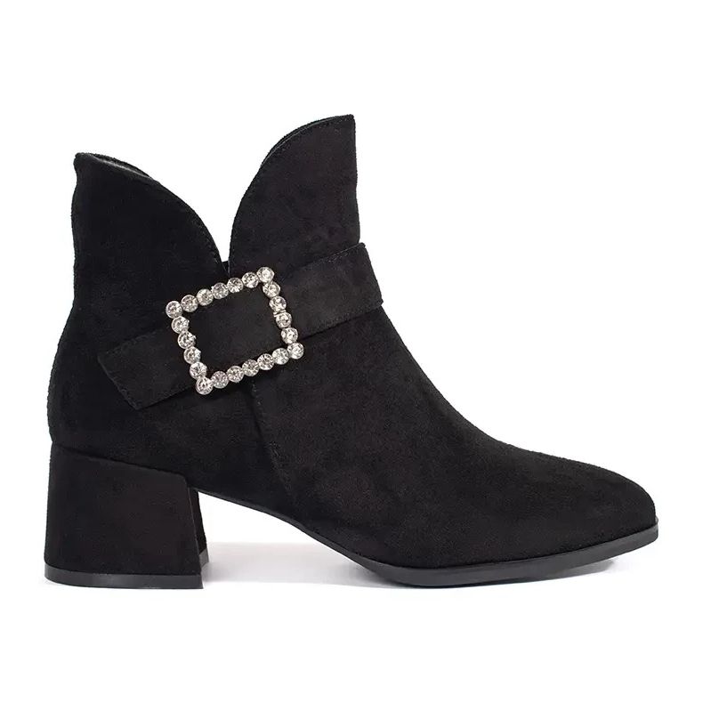Inna marka Dámské černé semišové kotníkové boty se stříbrnou přezkou černá