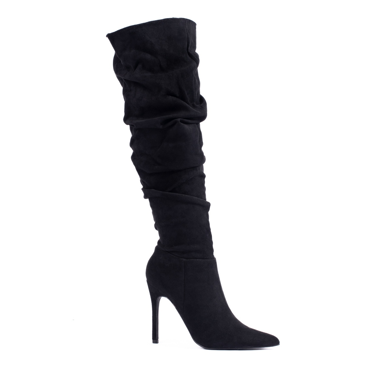 - Modelka: Dámské černé semišové kozačky na vysokém podpatku