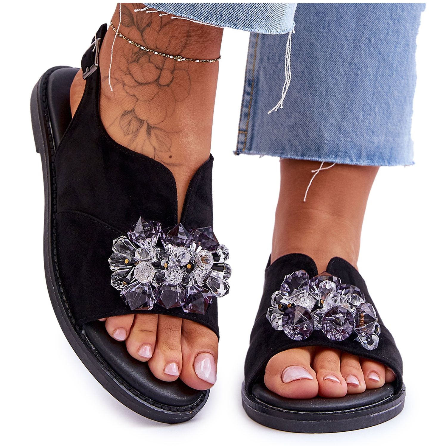Dámské semišové sandály Vinceza s kamínky Black Mersea, zdobené na přední straně plastovými kamínky, které efektně imitují diamanty, jistě upoutají pozornost a dodají lesk letním stylizacím. Vzdušný design sandálů se skvěle hodí jak na plážové procházky, tak na večerní výlety.