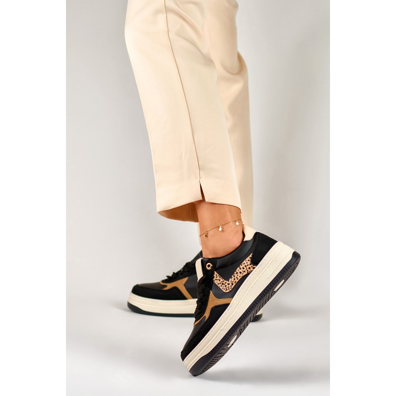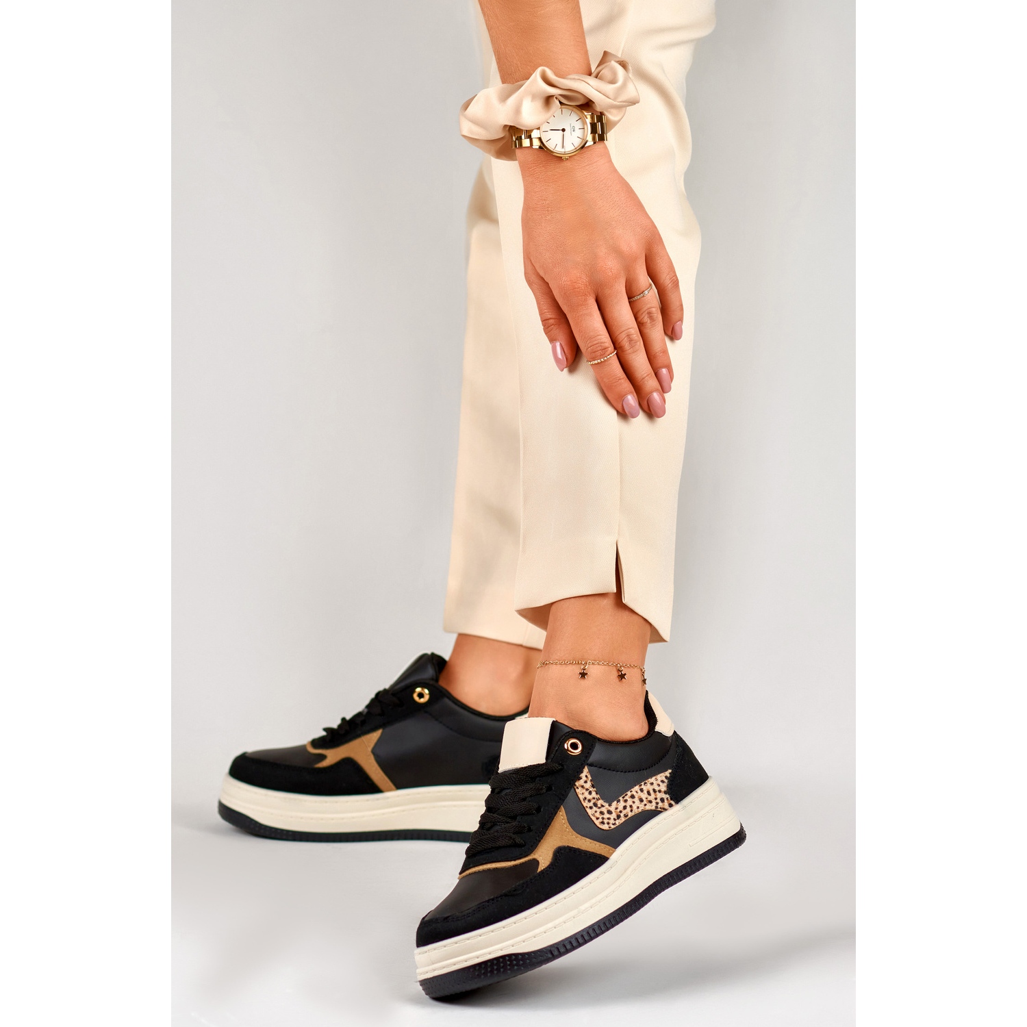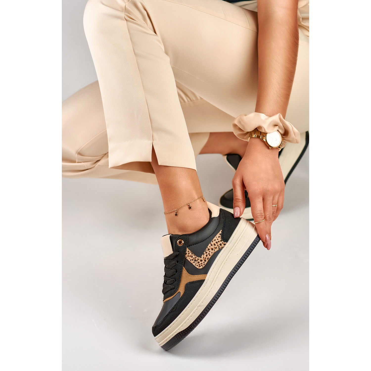 Černé tenisky Lara se vyznačují kulatou špičkou a nízkou výškou, která zajišťuje komfort nošení po celý den. 4 cm vysoká platforma přidává určitou výšku a zároveň zajišťuje stabilitu a pohodlí. Šněrovací uzávěr umožňuje dokonalé přizpůsobení noze a syntetická podrážka zajišťuje dobrou přilnavost a odolnost.