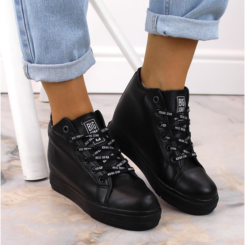 Dámské černé tenisky na klínku Big Star EE274127 černý