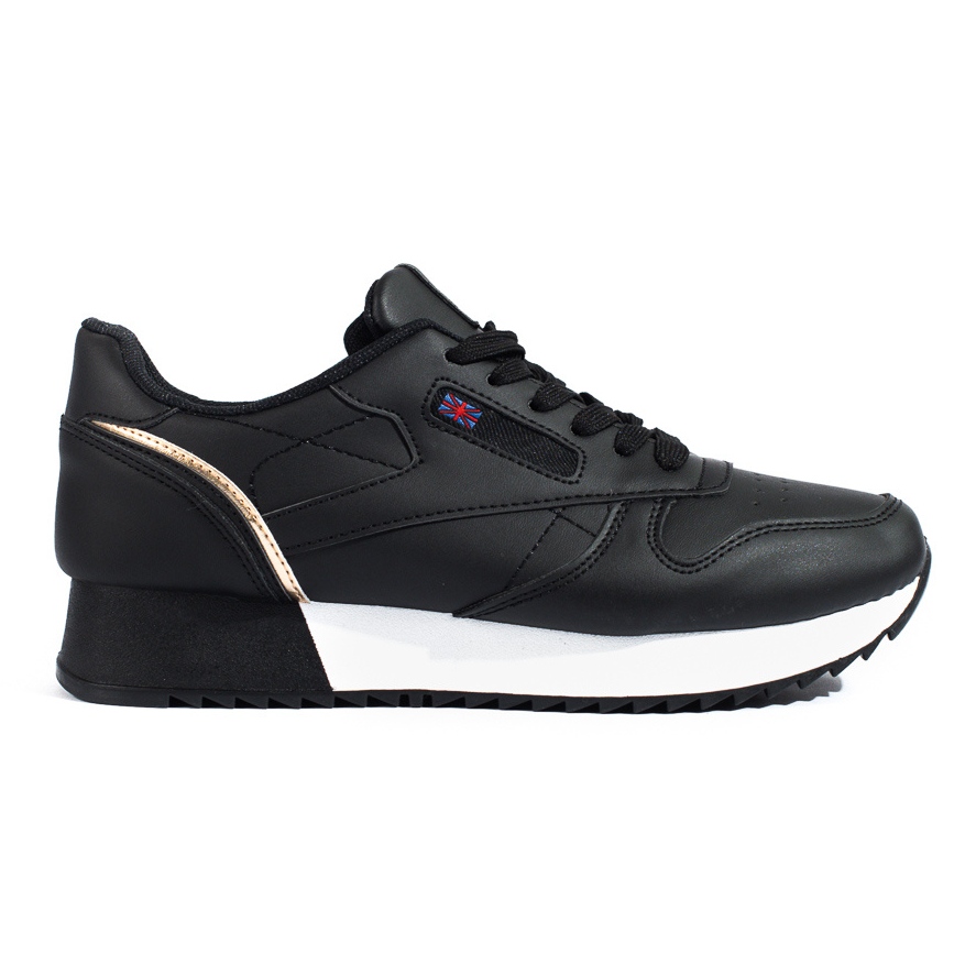 Uvnitř jsou boty podšité příjemným textilním materiálem, který obepíná nohu, a látkové vložky poskytují další pohodlné odpružení. Díky minimalistickému designu v klasické černé barvě s jemnými zlatými akcenty se boty snadno hodí k mnoha ležérním stylům.
