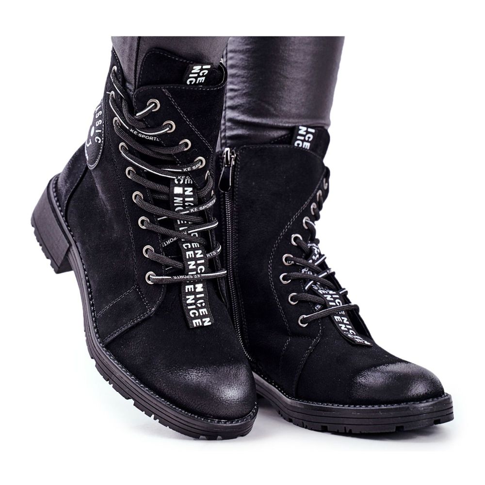Boty mají kulatou špičku a byly navrženy s důrazem na detail. Zdobené černým pruhem s nápisy "NICE" a neobvyklým šněrováním jistě upoutají pozornost a dají vyniknout každému stylingu. Plochý 4 cm vysoký podpatek umožňuje pohodlné celodenní nošení a horní výška 14 cm dodává charakter a atraktivitu.