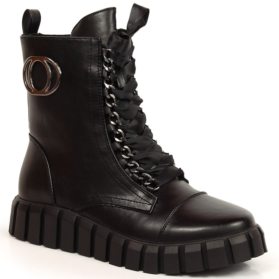 Tento model se vyznačuje klasickou, kulatou špičkou a praktickým zapínáním na zip a šněrování, díky kterému se snadno nazouvá a přizpůsobuje noze. Díky jejich univerzální černé barvě se skvěle hodí k různým stylům – od ležérních džínů až po elegantní šaty.