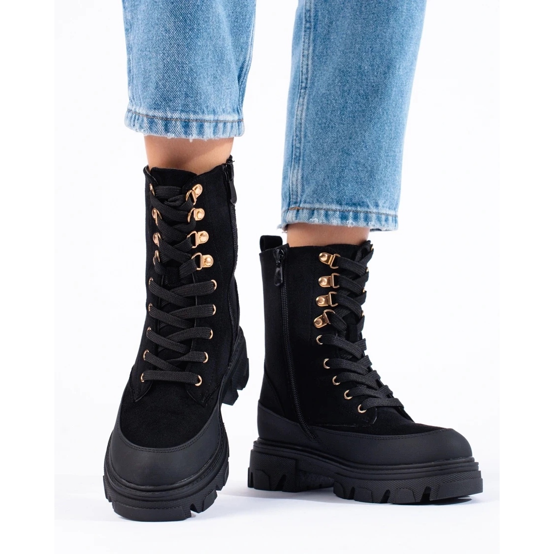 Moderní pracovníci W. Potocki kombinují rockovou postavu s každodenním pohodlím. Vyrobeno z ekologického semiše v klasické černé černé barvě, dokonale odpovídají stylizacím podzimního - jsou izolovány a vybaveny přikrývkou z měkké obuvi, díky které poskytují teplo a pohodlí i při nízkých teplotách.