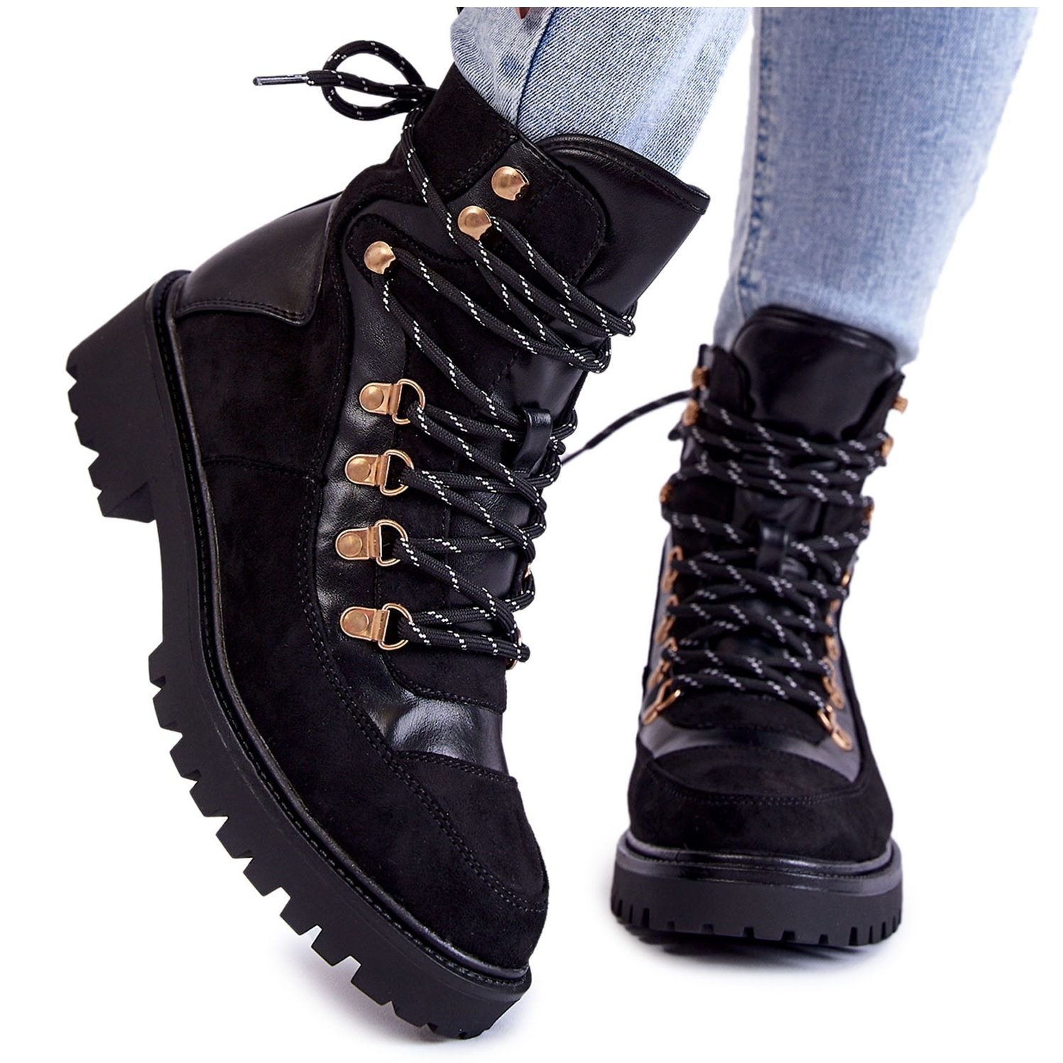 Inna marka Dámské černé zateplené kozačky na šněrování Jesse černá