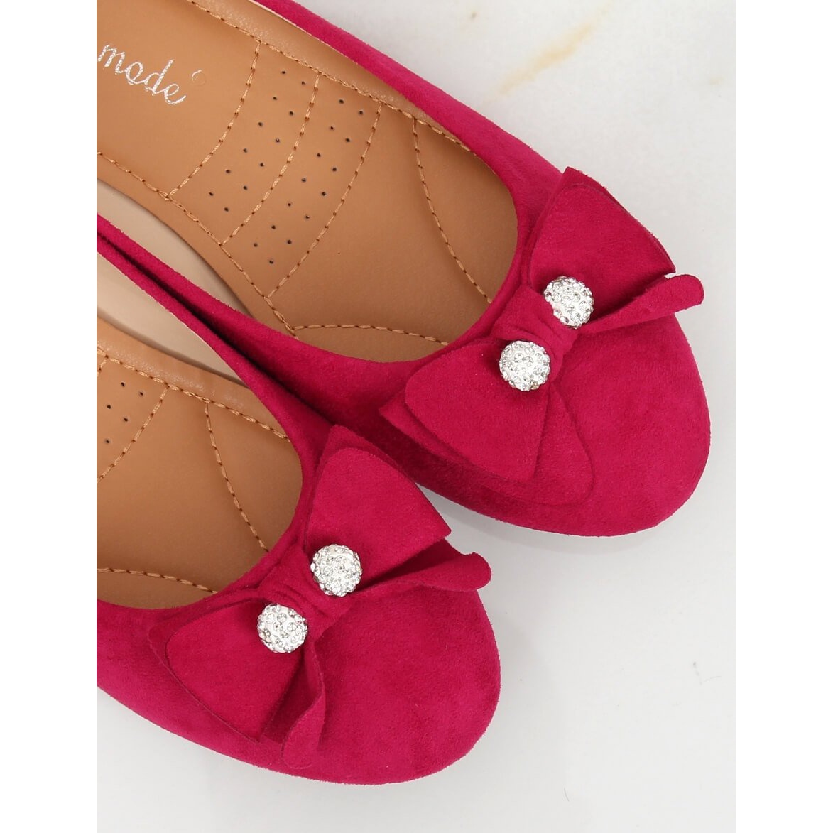 Představujeme jedinečné dámské balerínky v krásném fuchsiovém odstínu - model 6244 Fuchsia. Tyto stylové boty jsou vyrobeny z ekologického semiše, díky čemuž jsou nejen estetické, ale také šetrné k životnímu prostředí. Jejich jedinečným prvkem je krásná mašlička, která zdobí svršek a stříbrné kuličky posázené zirkony dodávají eleganci a lesk.
