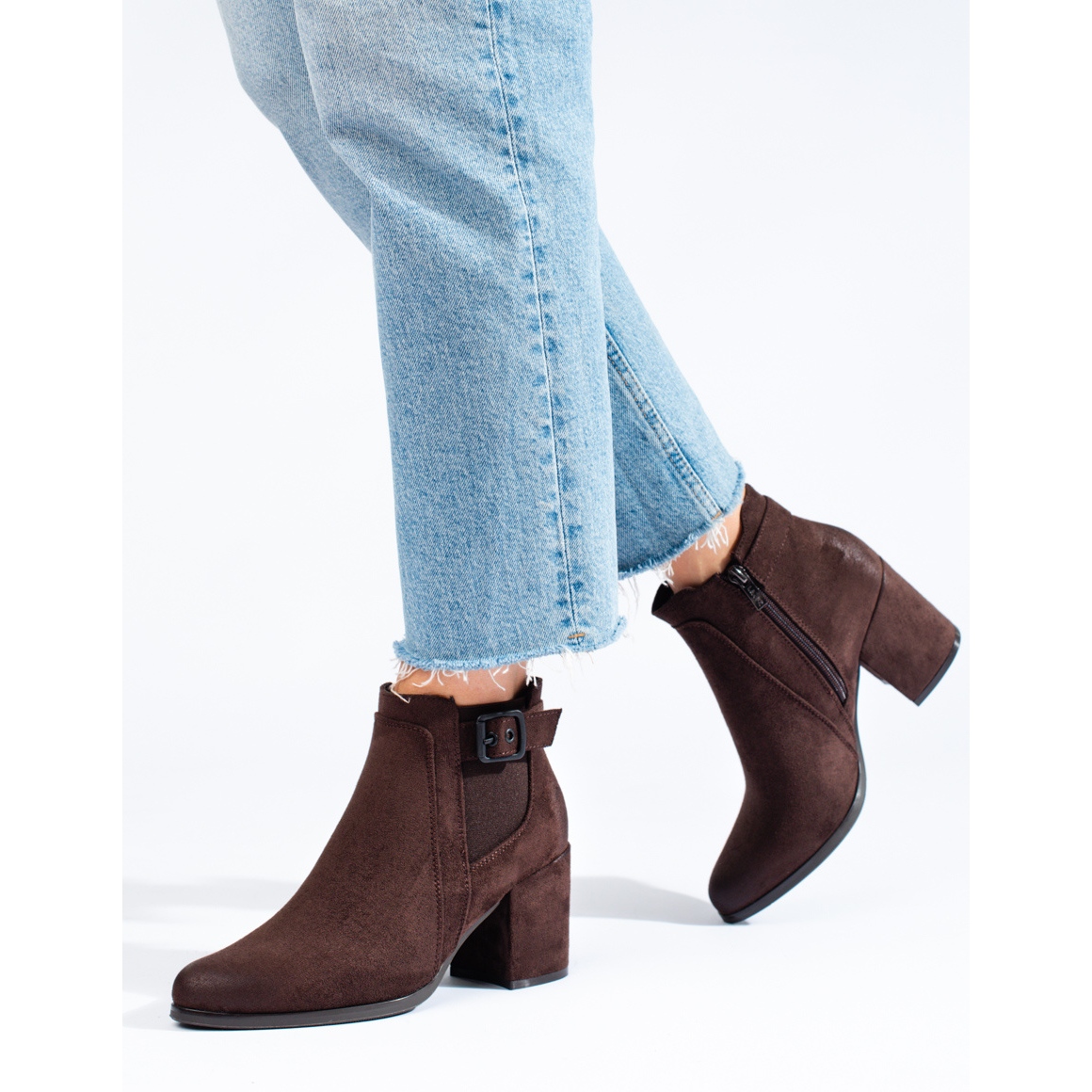 SHELOVET Dámské hnědé semišové boty Chelsea na sloupku Shelovet hnědý