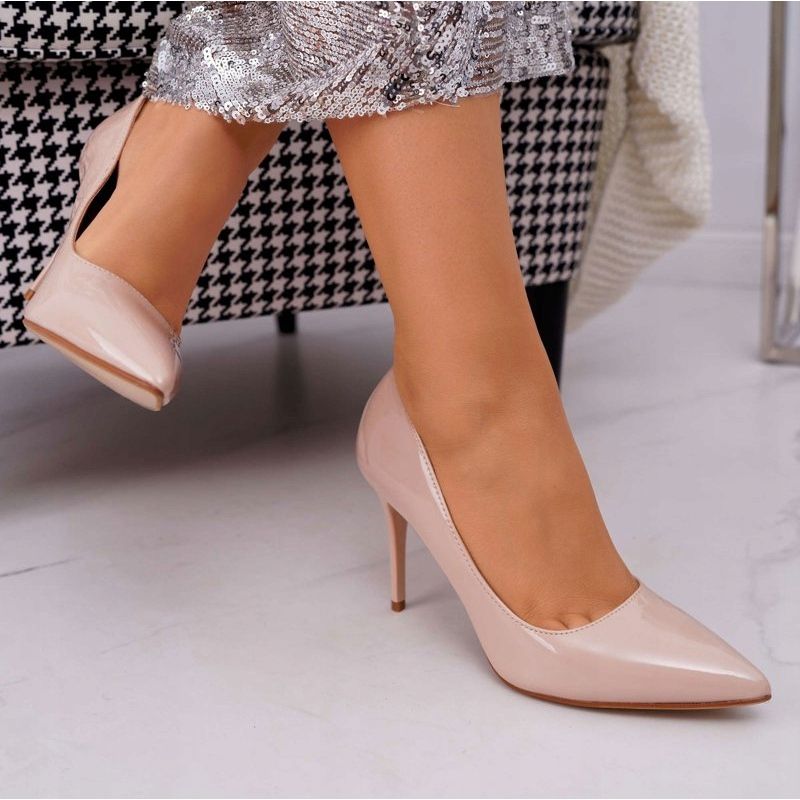 LU BOO Dámské jehlové jehly Lu Boo Spitz lakované béžovou lanthou béžový