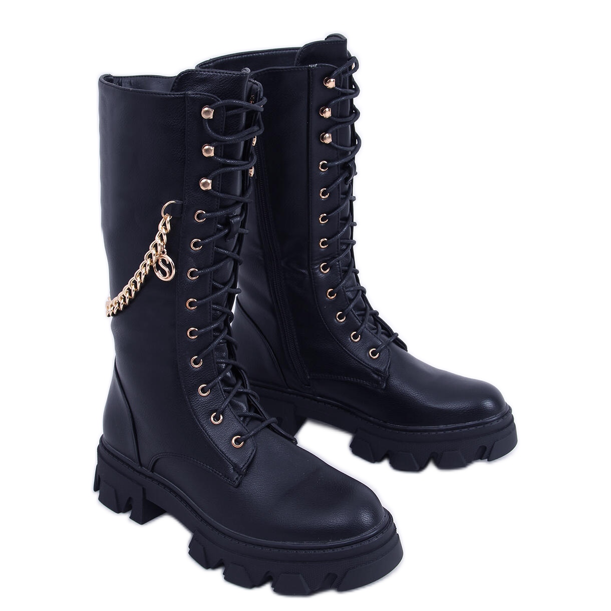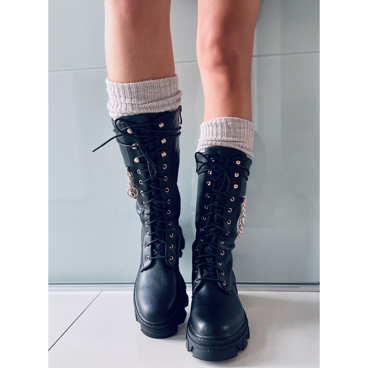 Představujeme dámské kozačky BM Totah Black - ideální nabídku pro ženy, které chtějí spojit módní design s pohodlím nošení. Tyto šněrovací kozačky s vysokou podrážkou vynikají nejen svým moderním střihem, ale také stylovým zlatým řetízkem, který jim dodává eleganci a charakter.