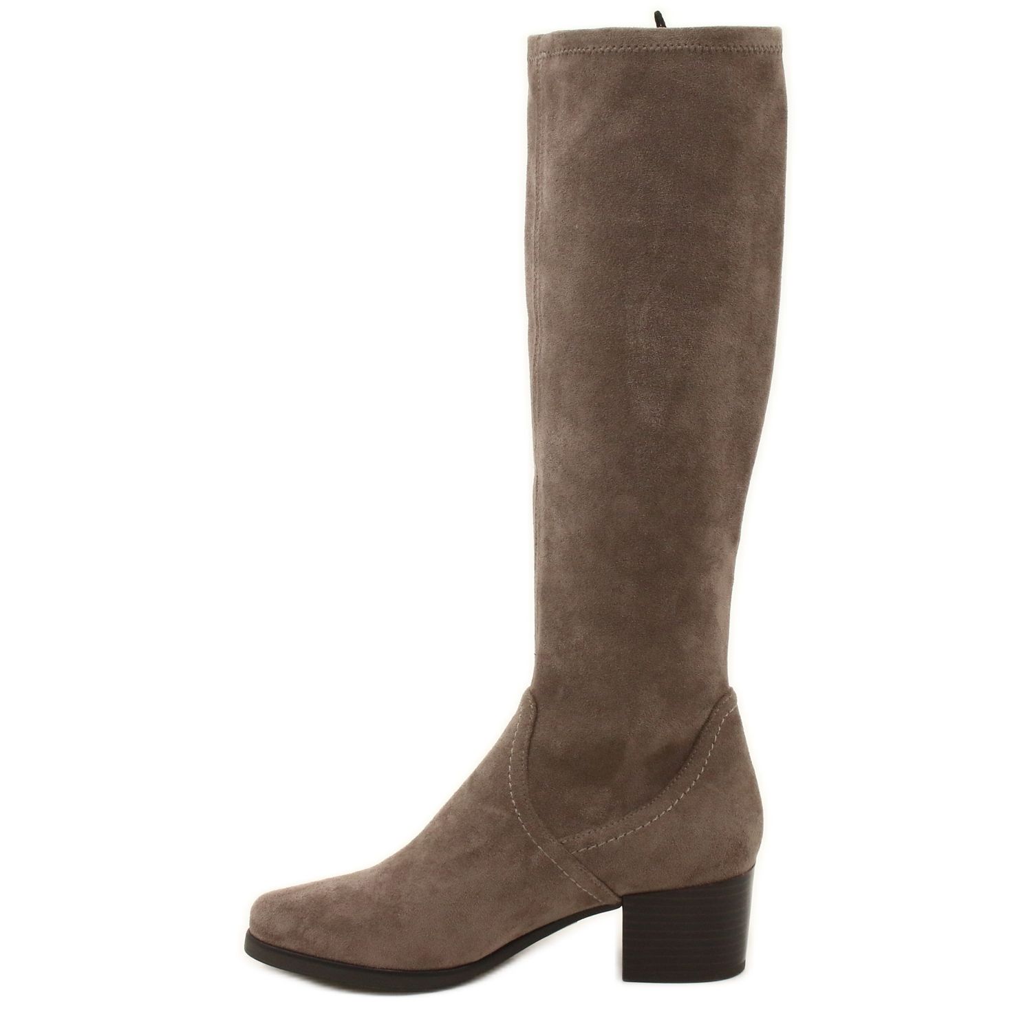 Elegantní dlouhé kolenní boty, které kombinují klasický střih s pohodlím. Vyrobeno ze silnějšího textilního semišového materiálu, který se pěkně přizpůsobuje tele a zdůrazňuje postavu. Perfektní každý den a pro další elegantní stylizace.